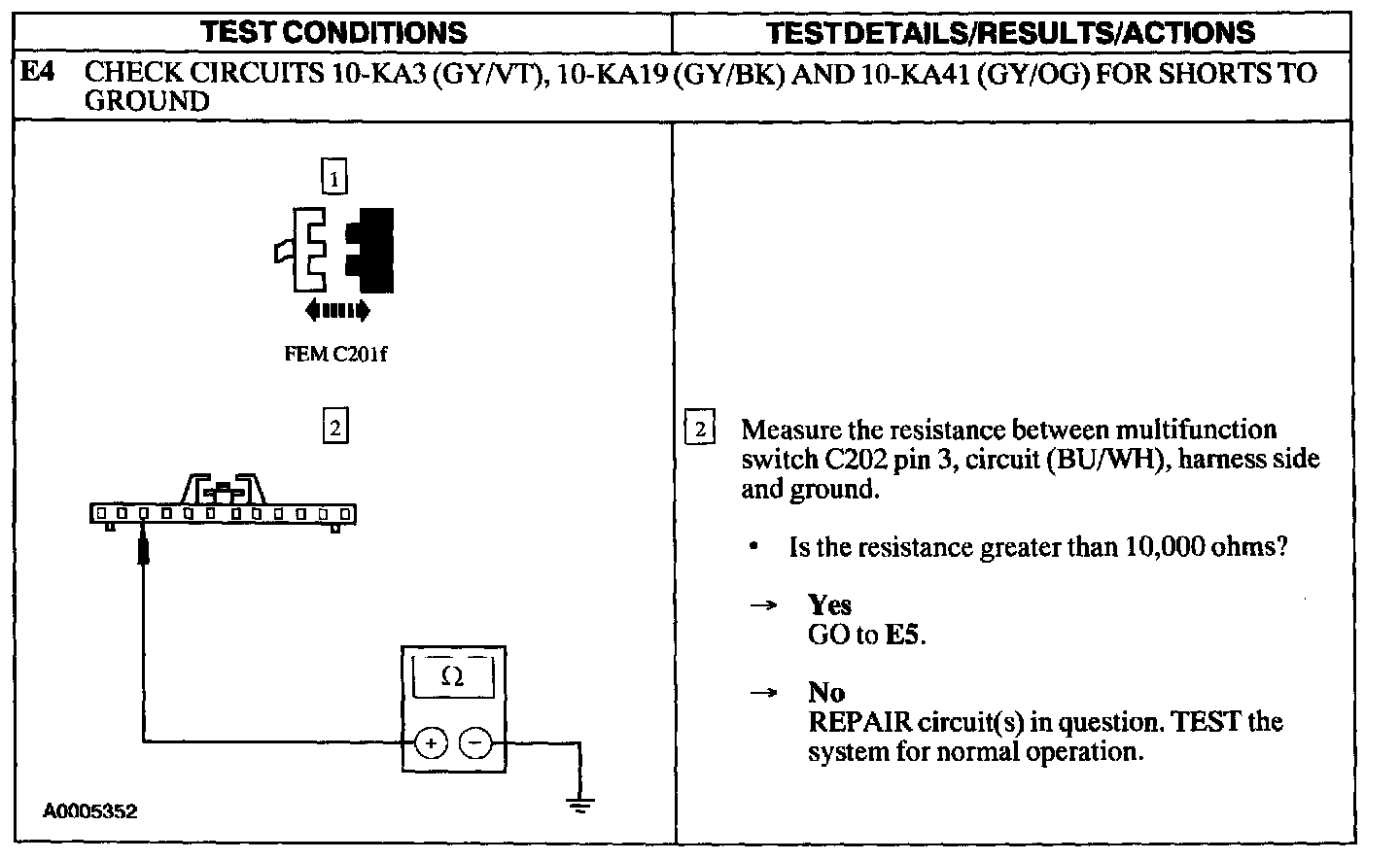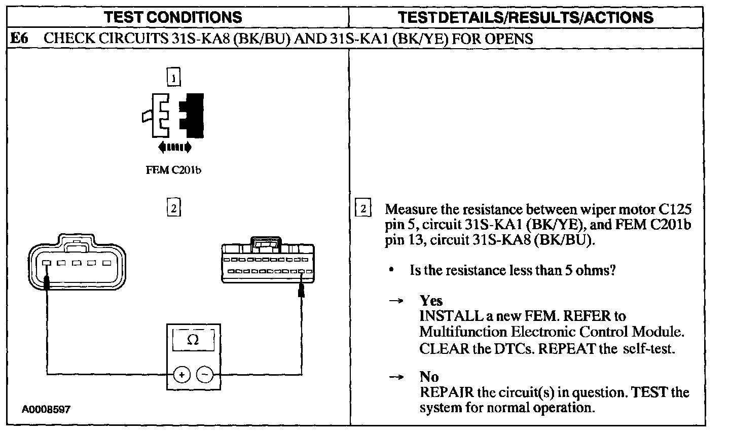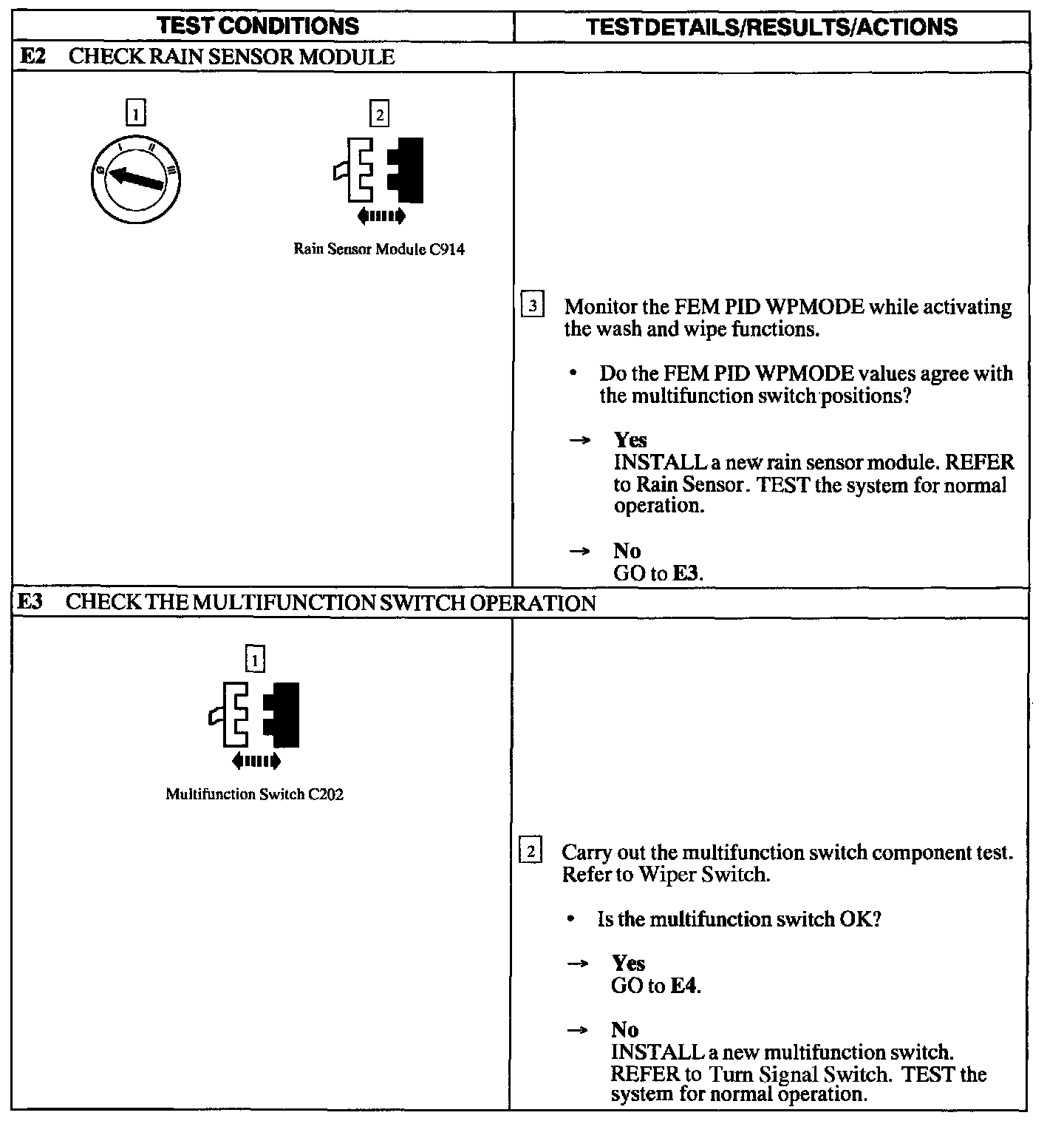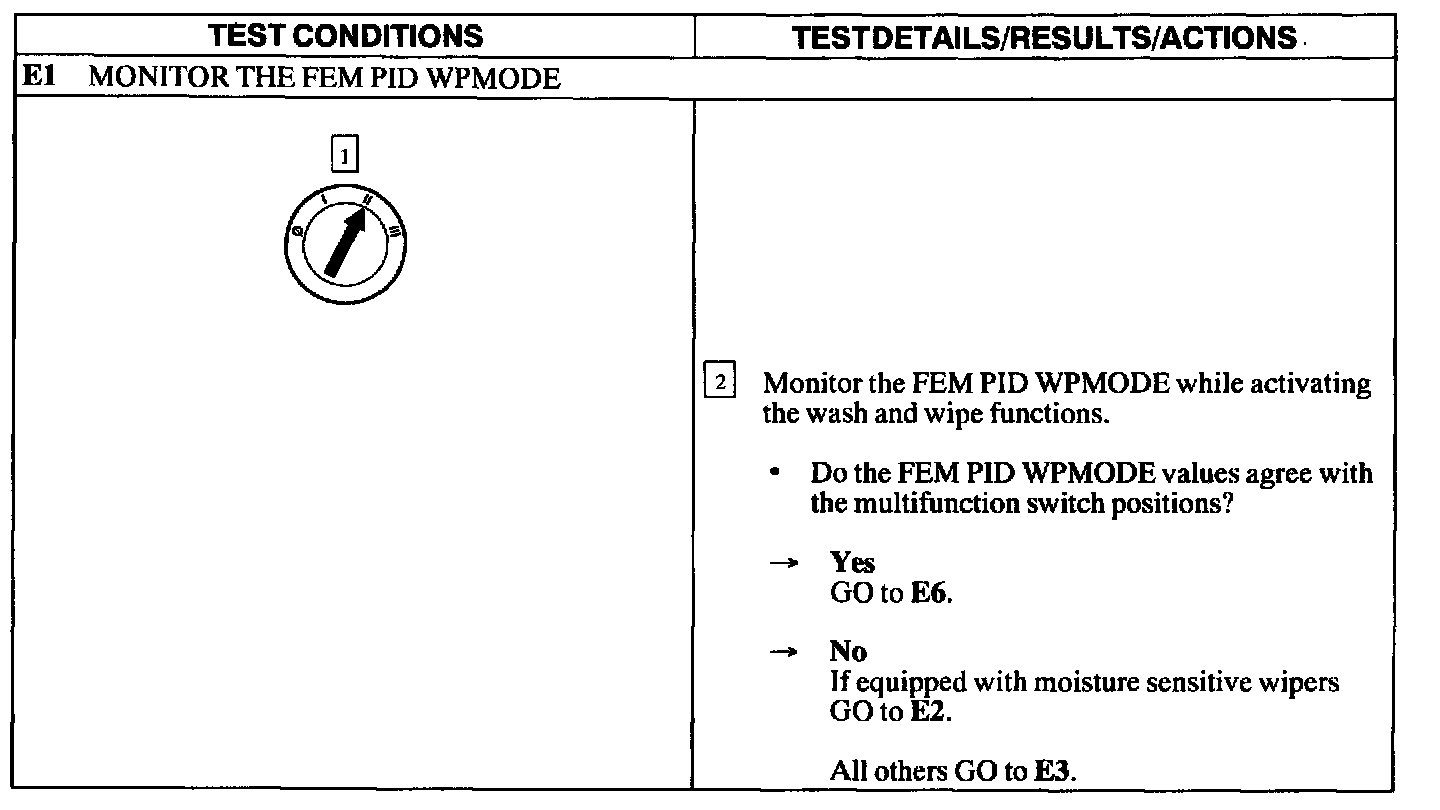 Test E: Wash And Wipe Function Does Not Operate Correctly