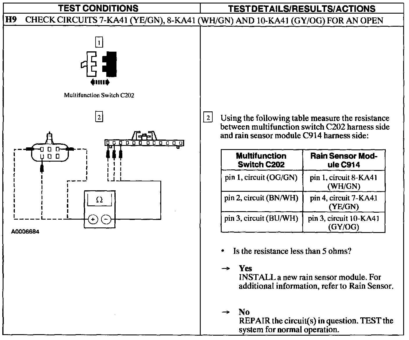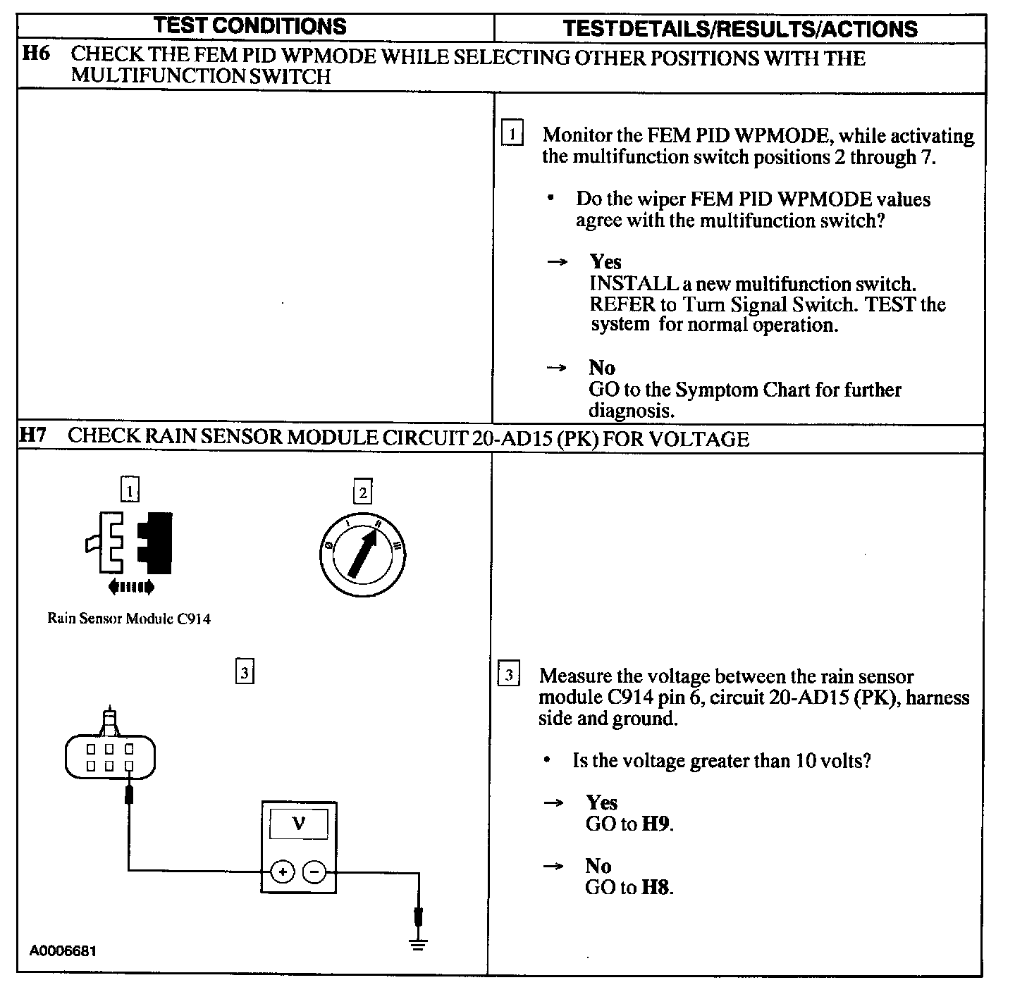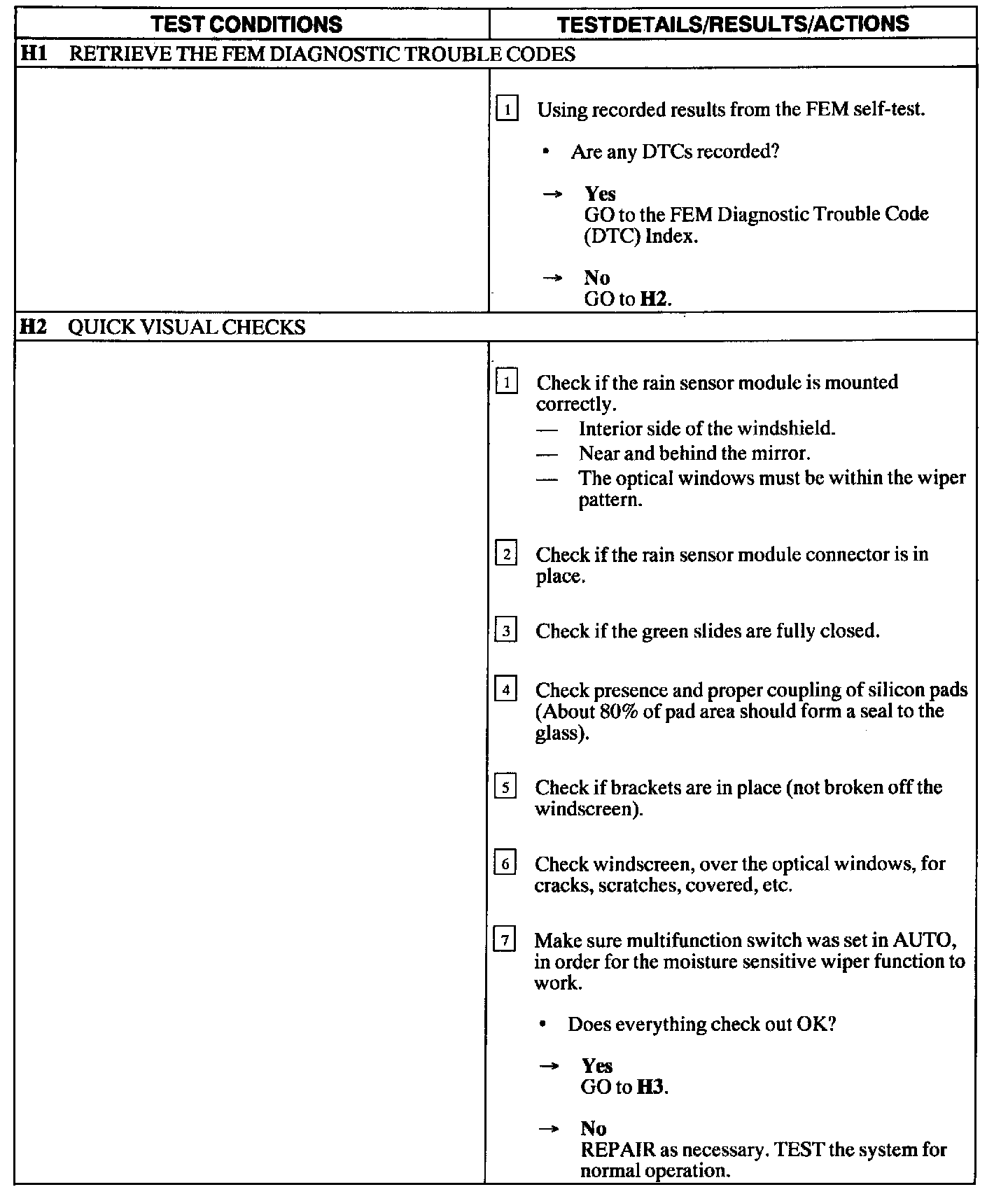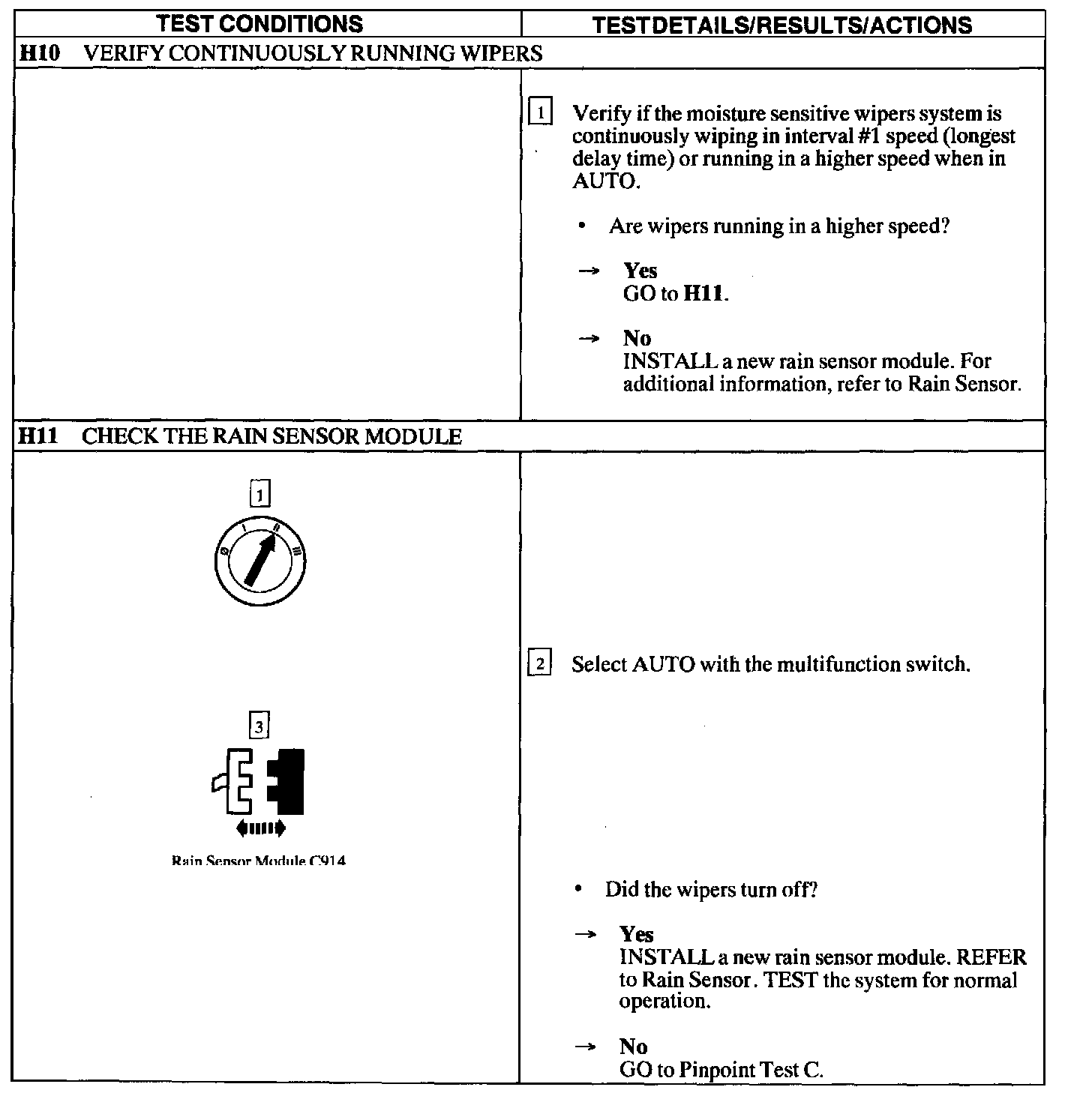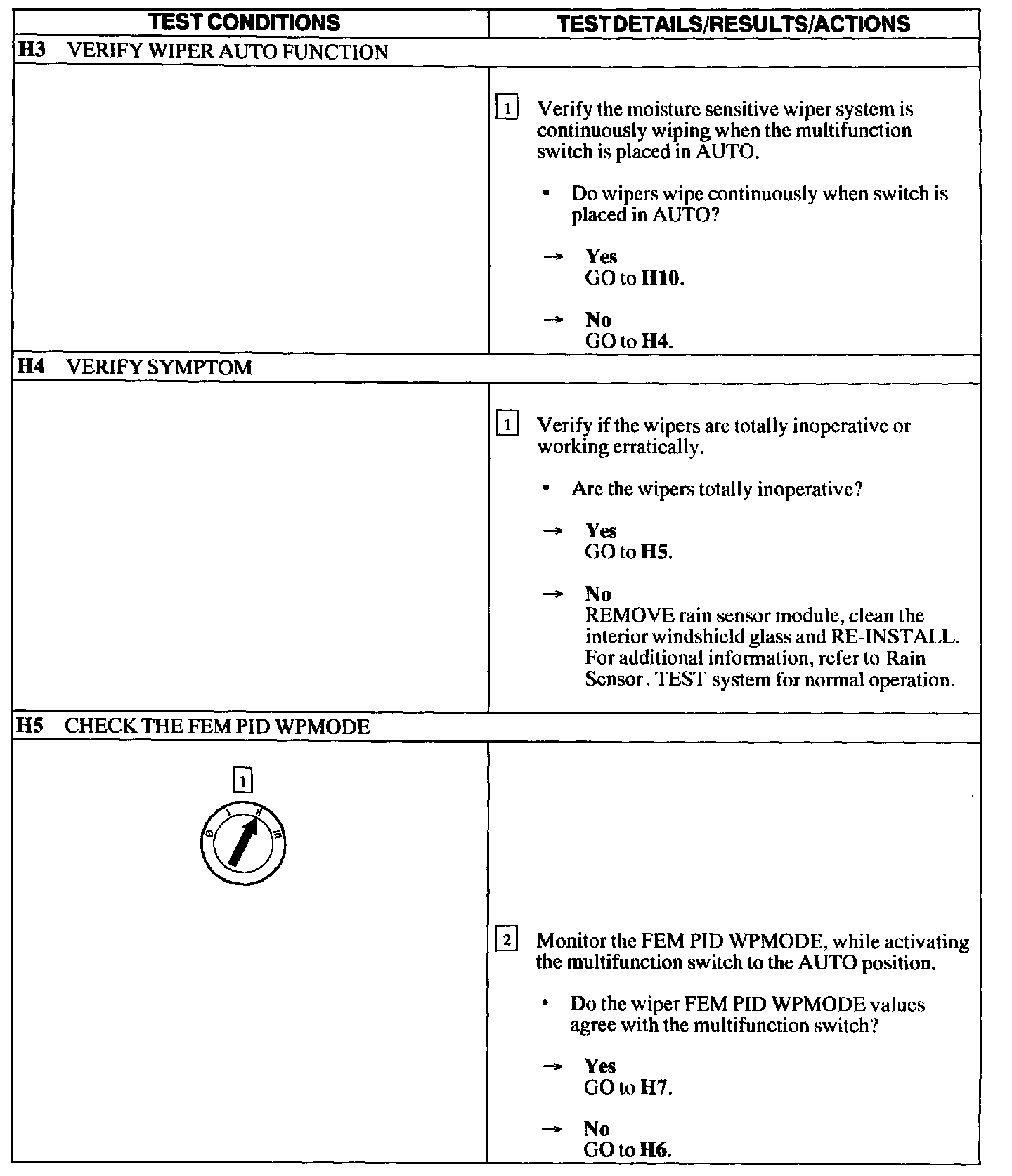 Test H: Rain Moisture Sensitive Function Does Not Operate Correctly