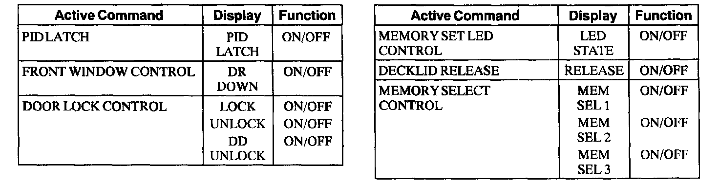 Driver Door Module (DDM) Active Command Index