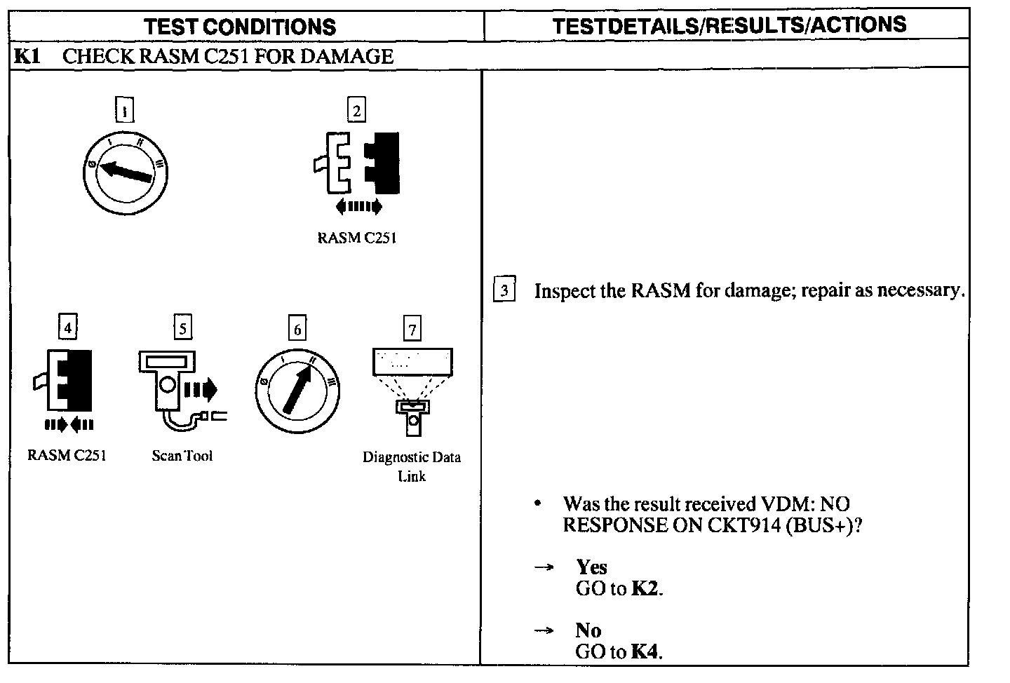 Test K: RASM Does Not Respond To The Diagnostic Tool