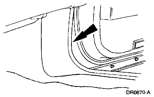 ^ THE RESTRAINTS CONTROL MODULE (RCM) ORIENTATION IS CRITICAL FOR CORRECT SYSTEM OPERATION. IF A VEHICLE EQUIPPED WITH AN AIR BAG SUPPLEMENTAL RESTRAINT SYSTEM (SRS) HAS BEEN INVOLVED IN A COLLISION IN WHICH THE RIGHT COWL A-PILLAR AREA HAS BEEN DAMAGED, INSPECT THE MOUNTING AND BRACKET FOR DEFORMATION. IF DAMAGED, THE RCM MUST BE REPLACED WHETHER OR NOT THE AIR BAGS HAVE DEPLOYED. IN ADDITION, MAKE SURE THE AREA OF THE RCM MOUNTING IS RESTORED TO ITS ORIGINAL CONDITION.