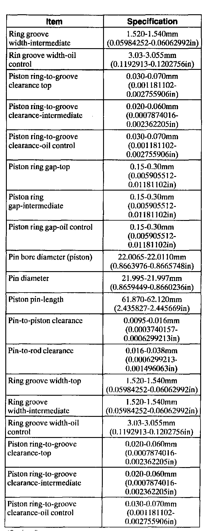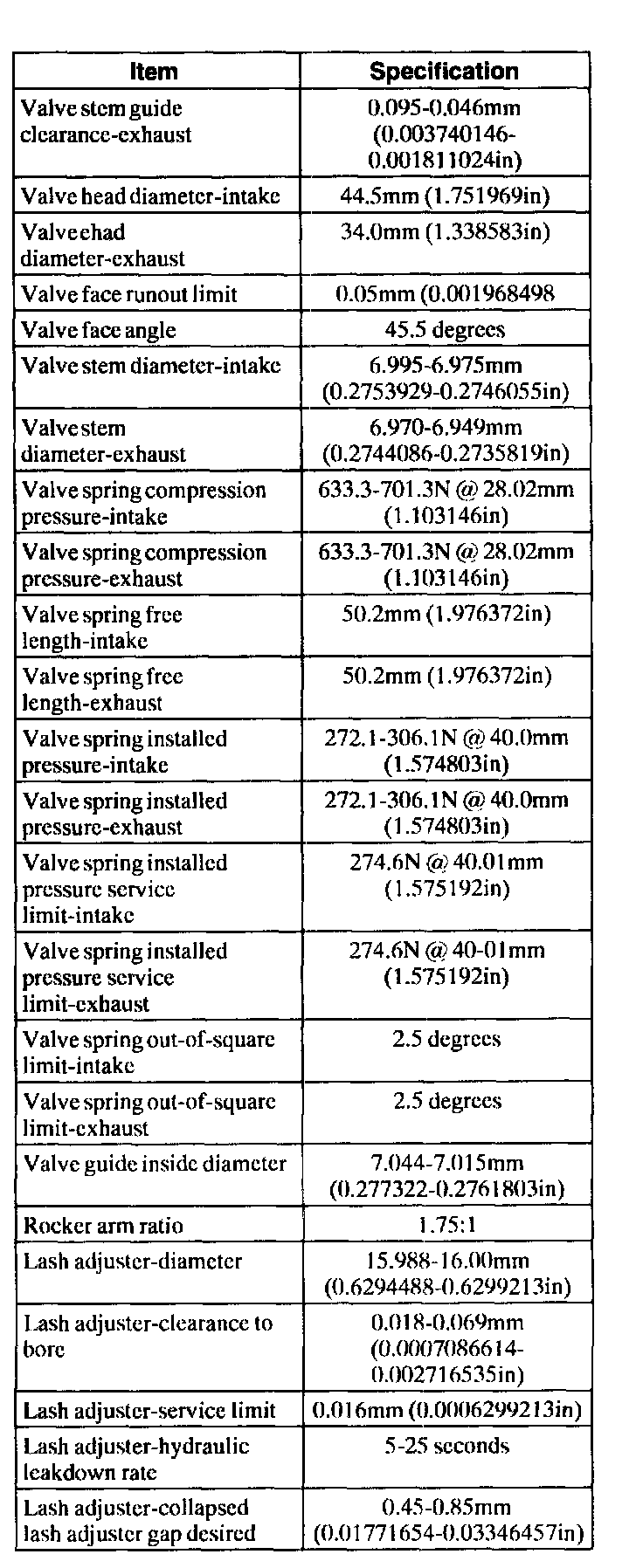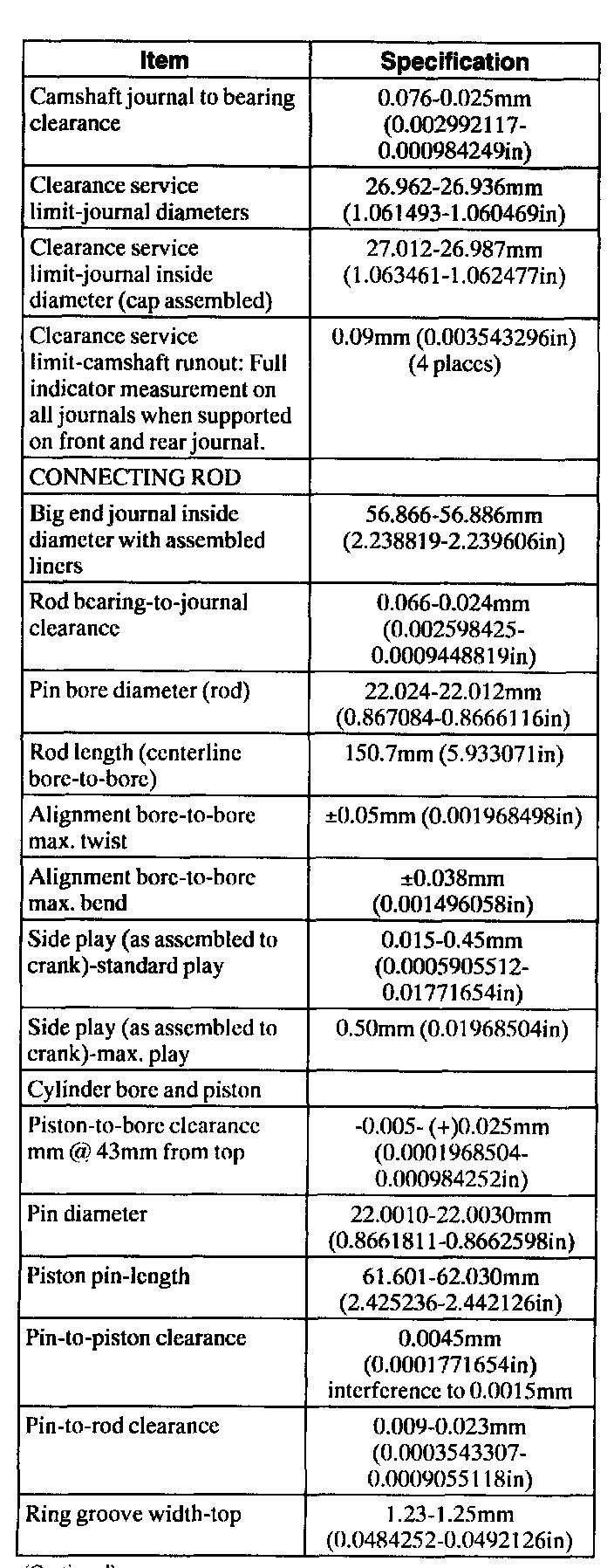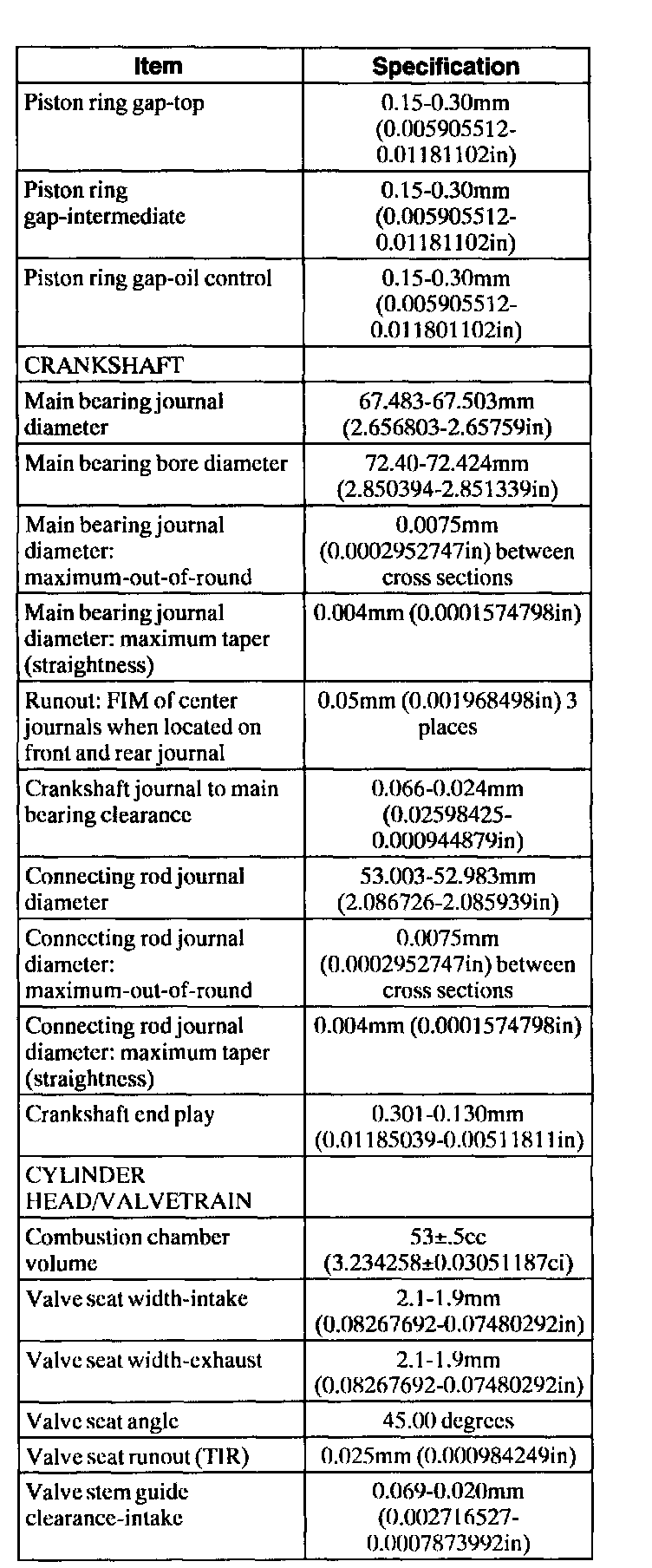 Engine General Specifications