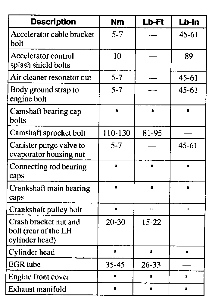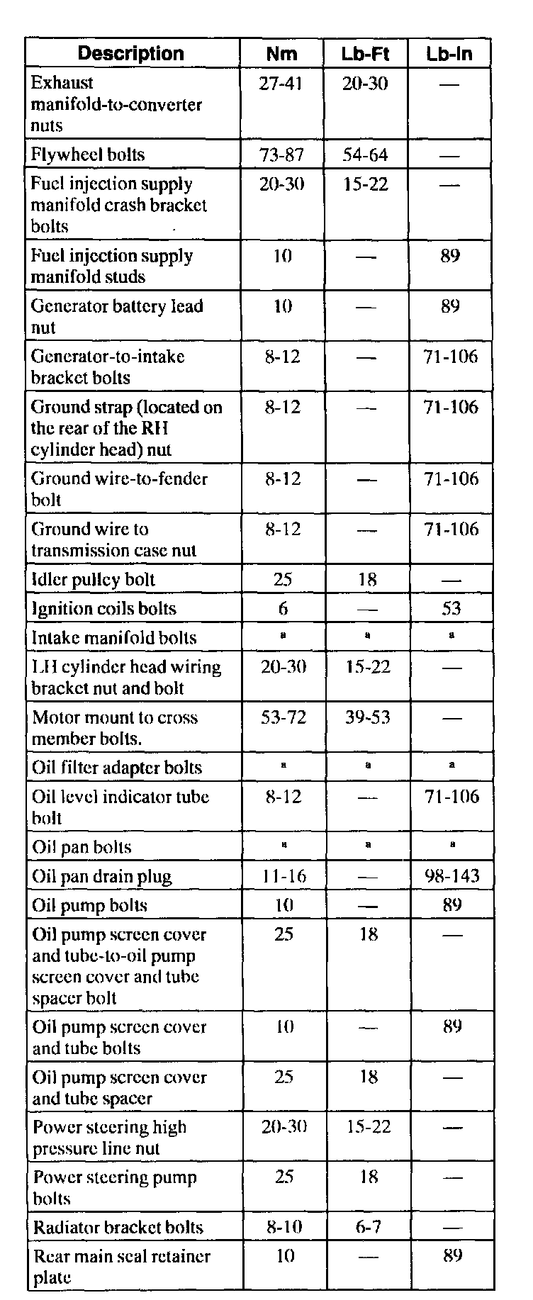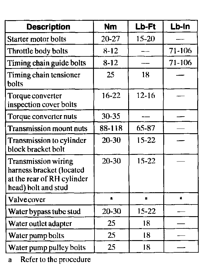 General Torque Specifications