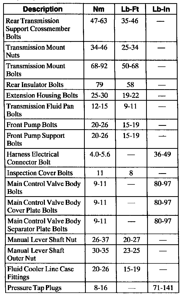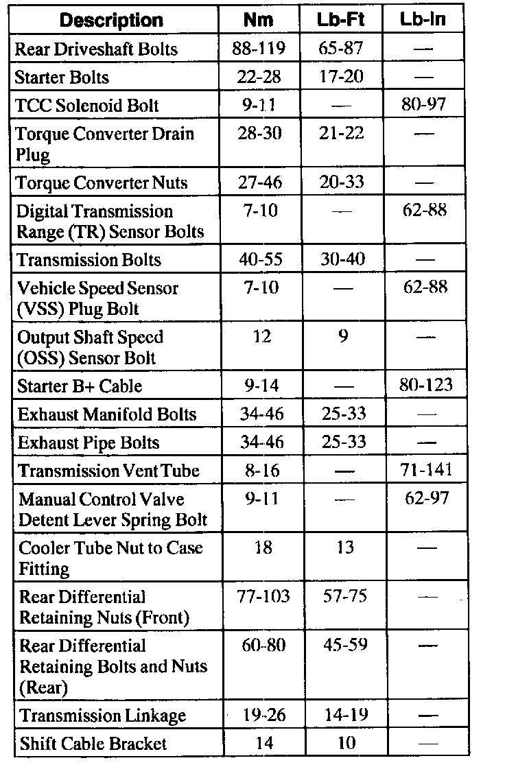 Torque Specifications