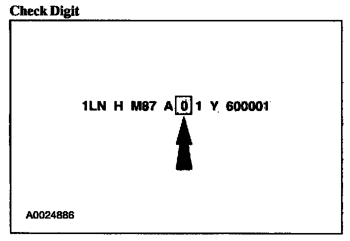 The ninth VIN position is the check digit code (0-9).