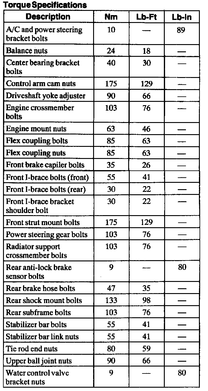 Torque Specifications: