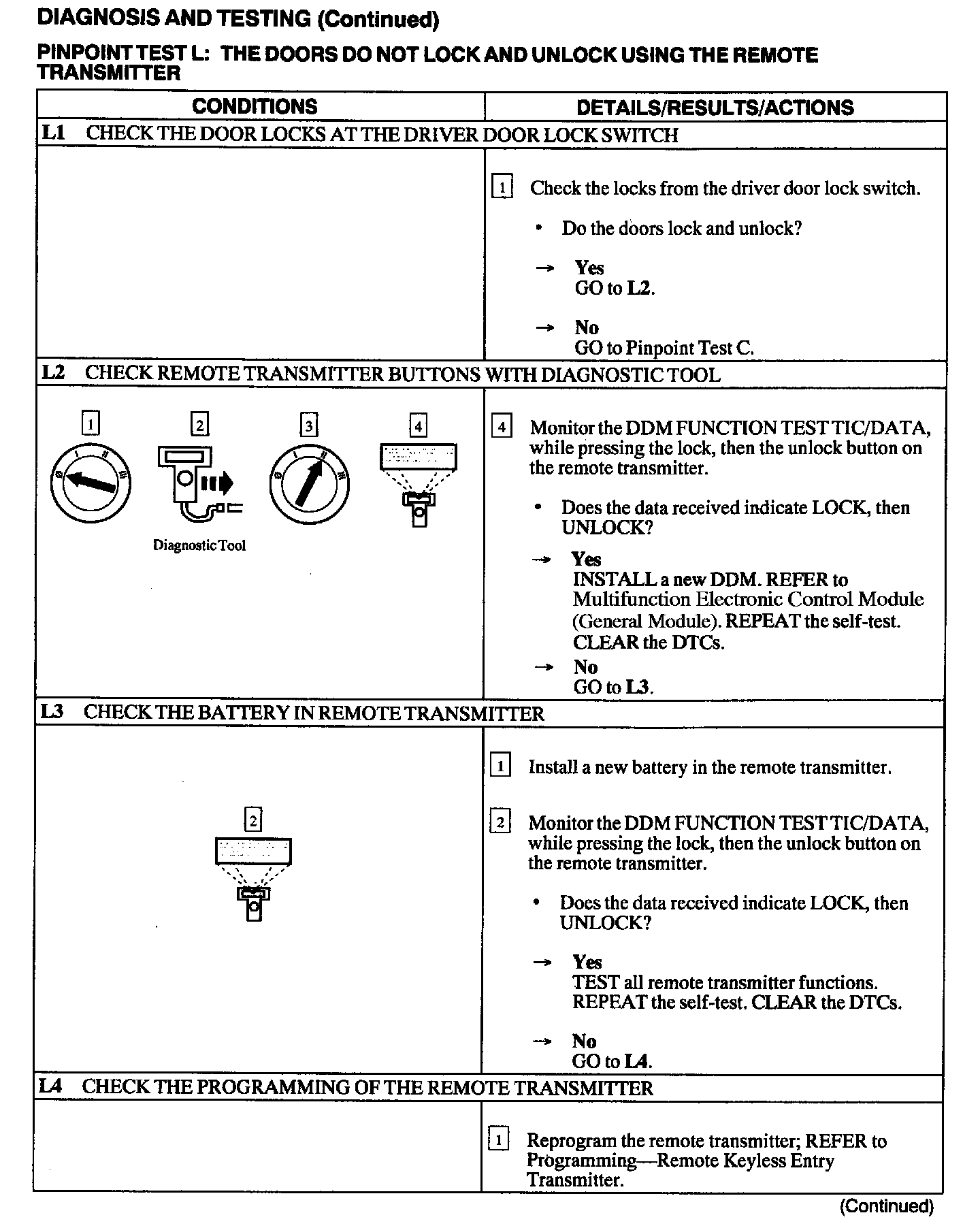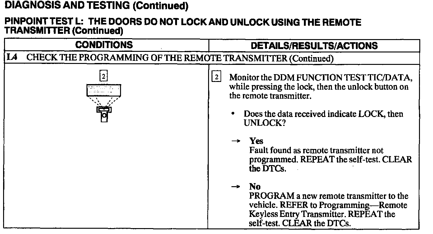 Test L: Doors Do Not Lock And Unlock Using The Remote Transmitter