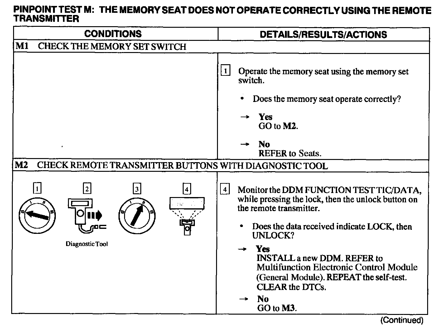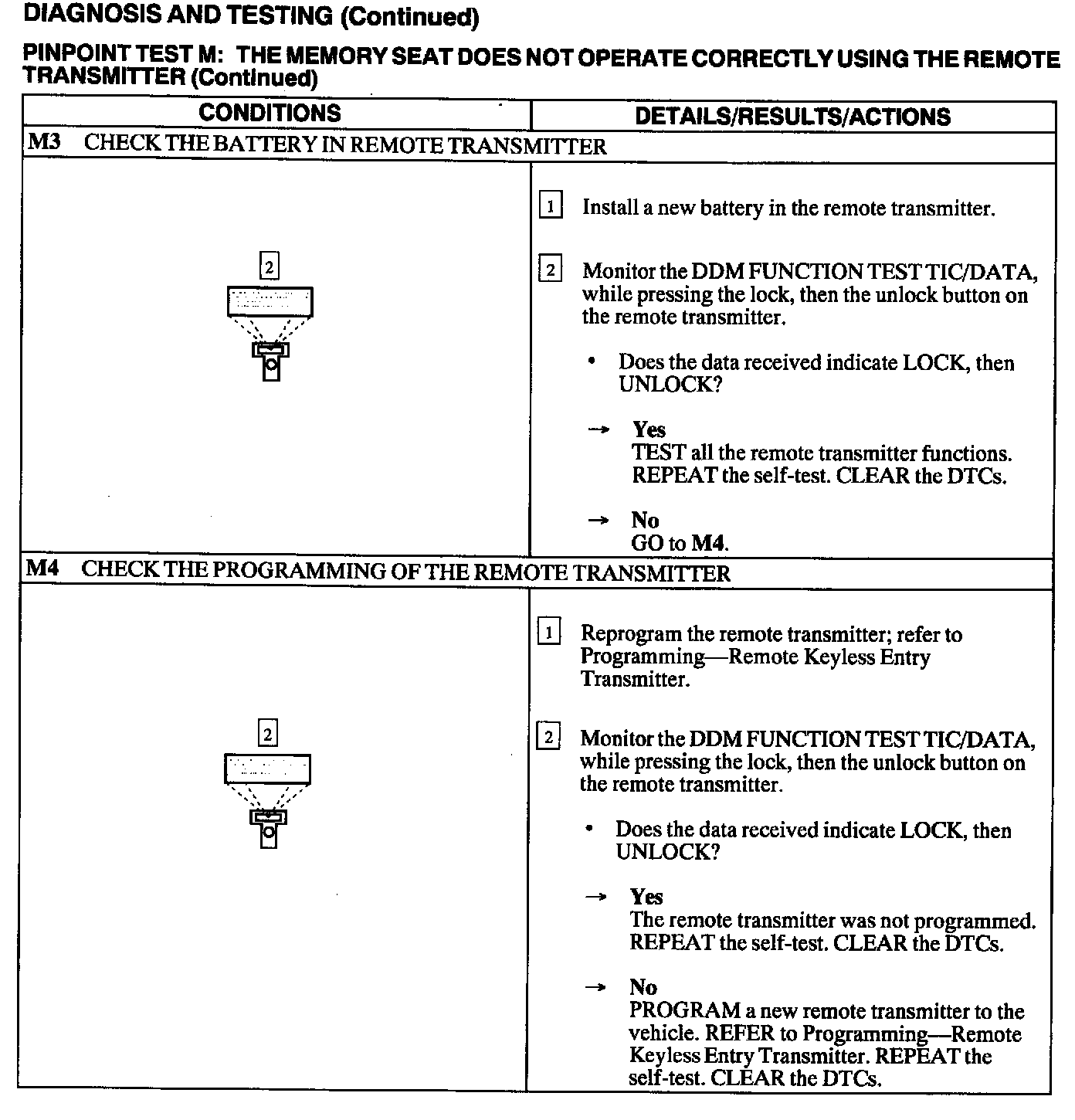 Test M: Memory Seat Does Not Operate Correctly Using the Remote Transmitter