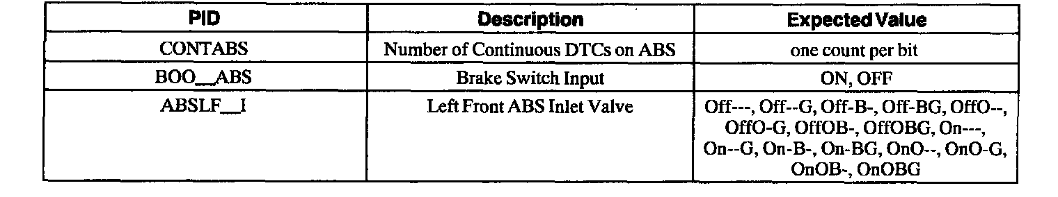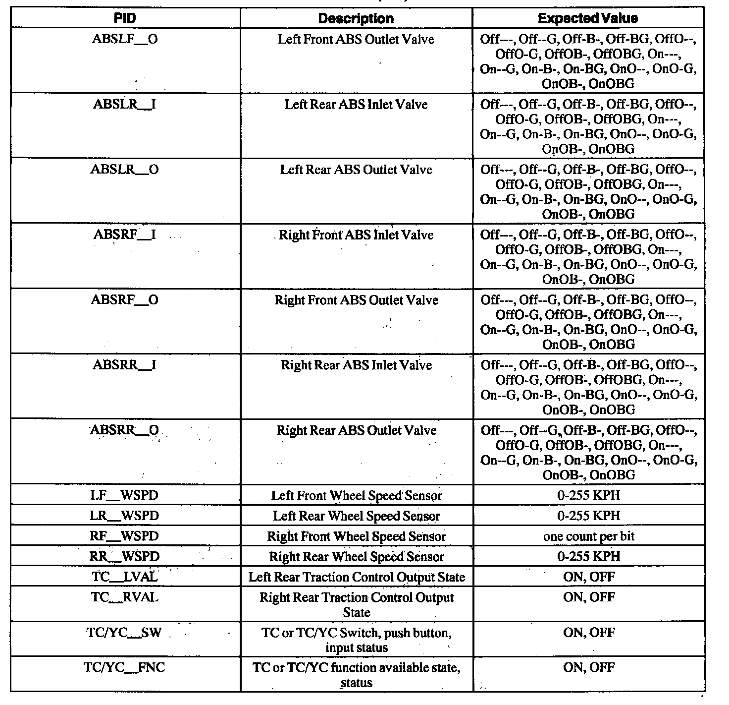 Anti-Lock Brake Control Module Parameter Identification (PID) Index