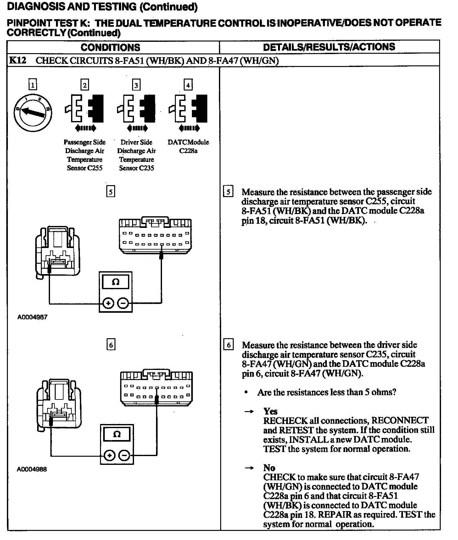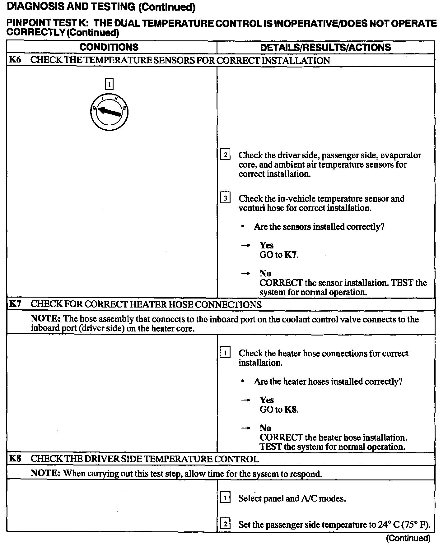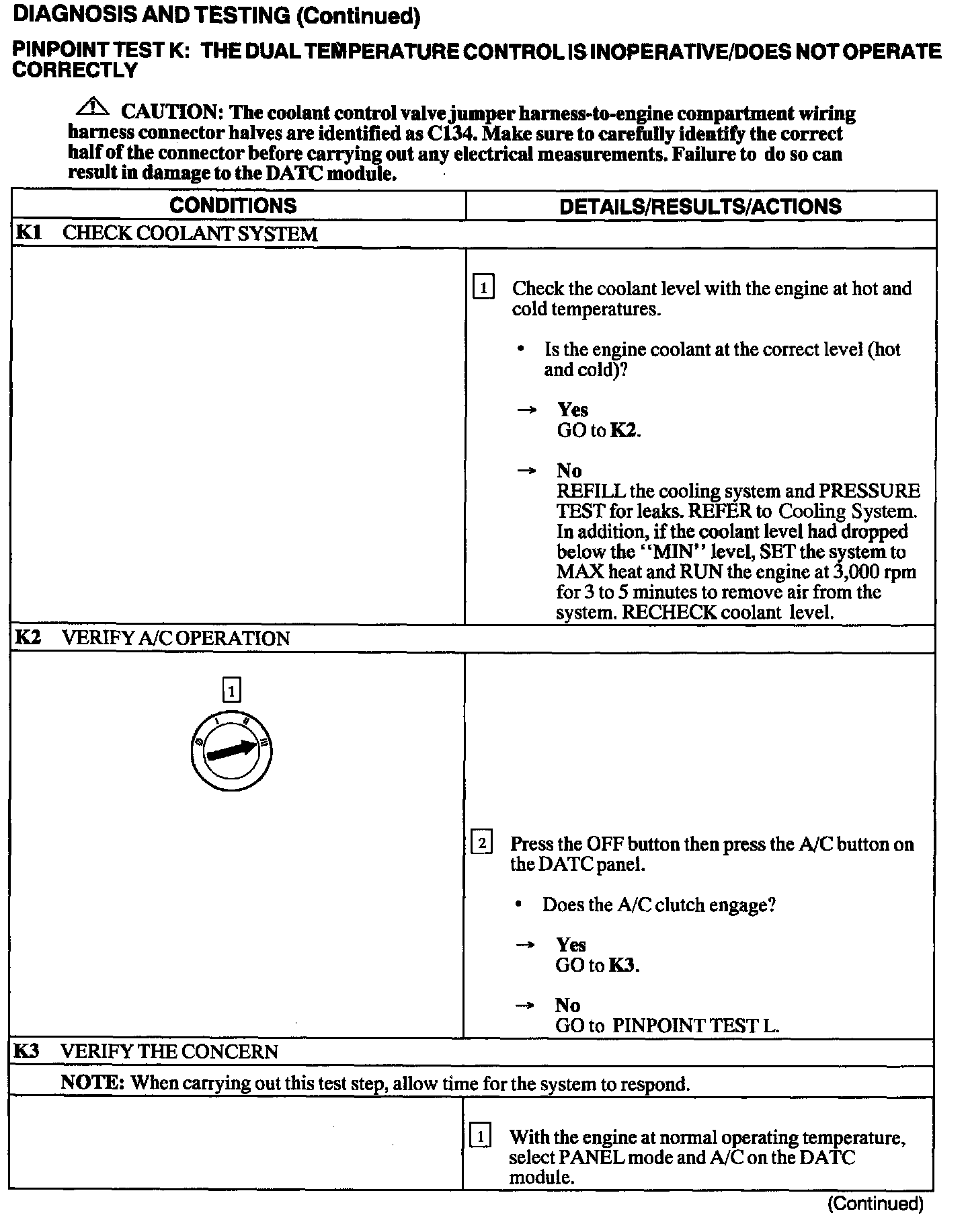 Test K: Dual Temperature Control Is Inoperative/Does Not Operate Correctly