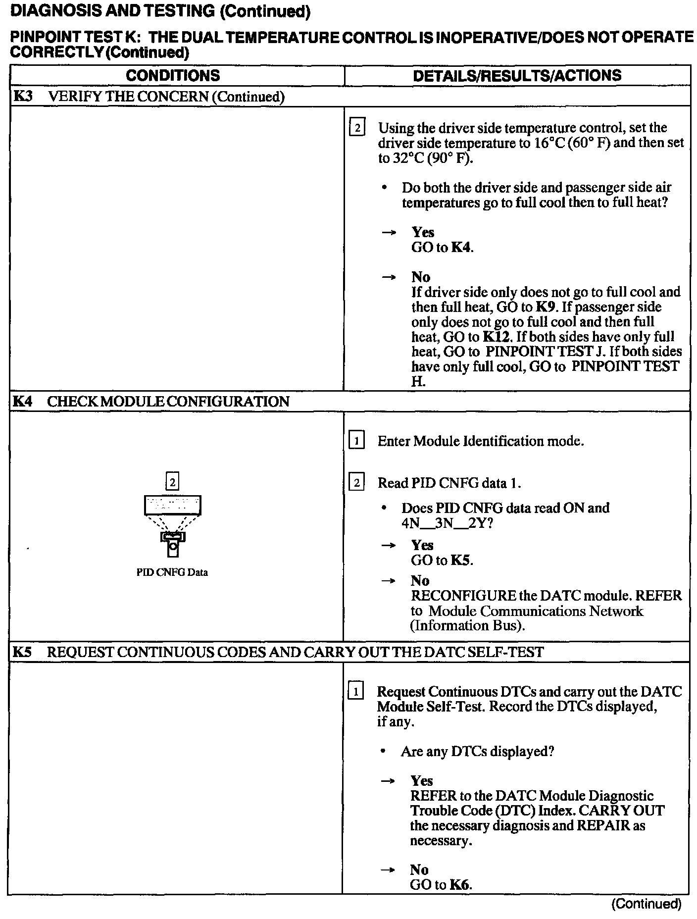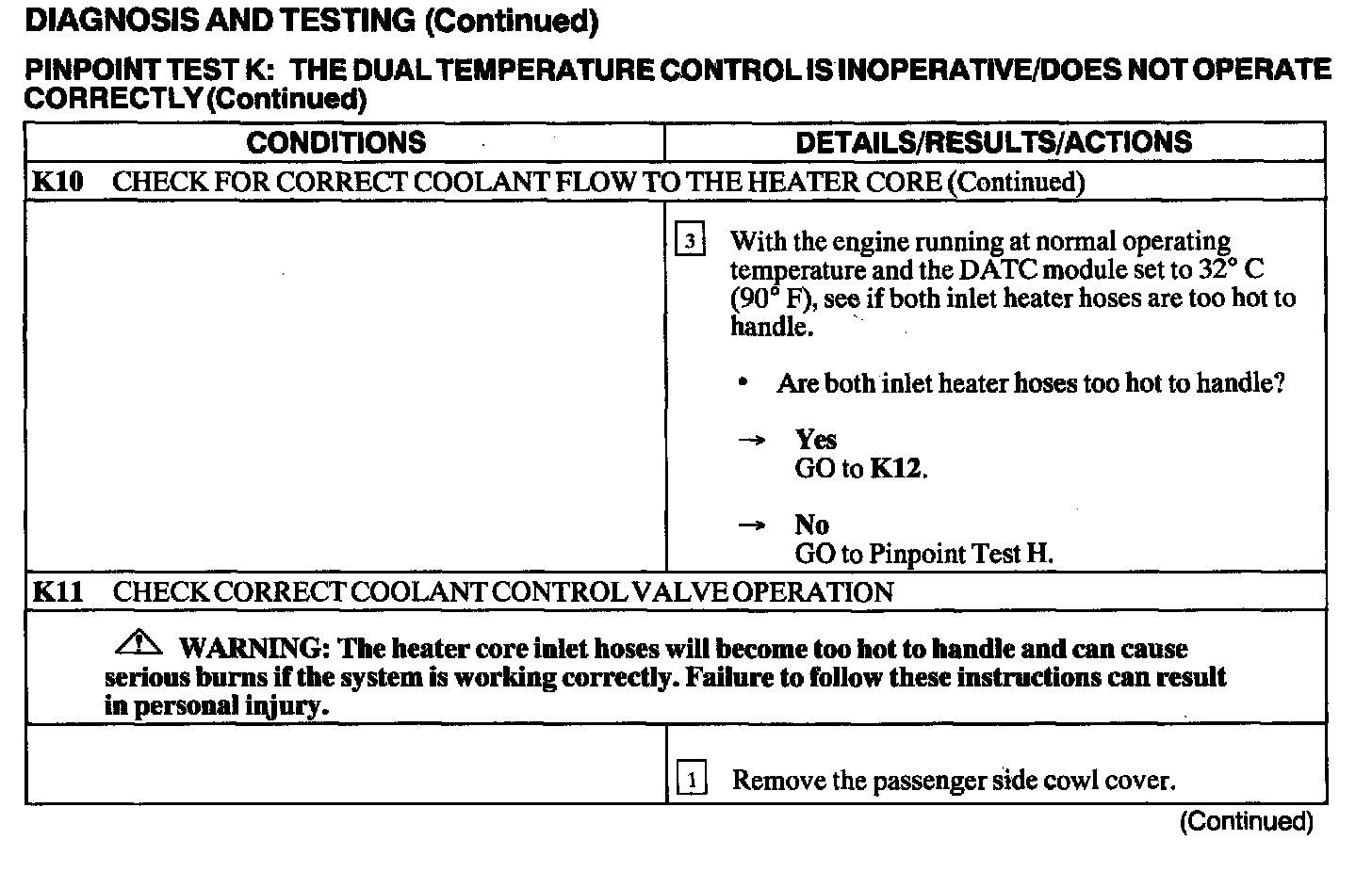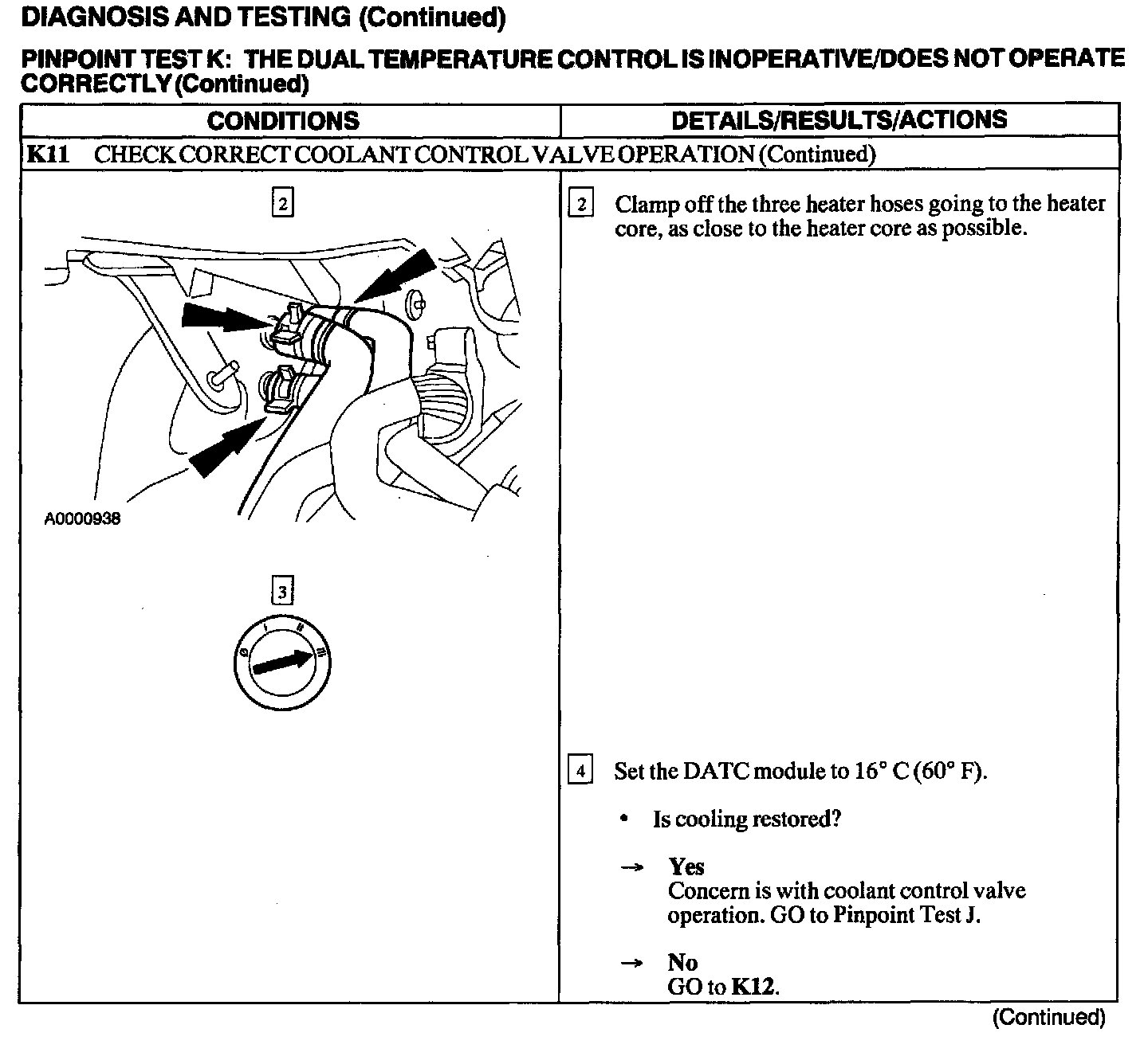 Test K: Dual Temperature Control Is Inoperative/Does Not Operate Correctly