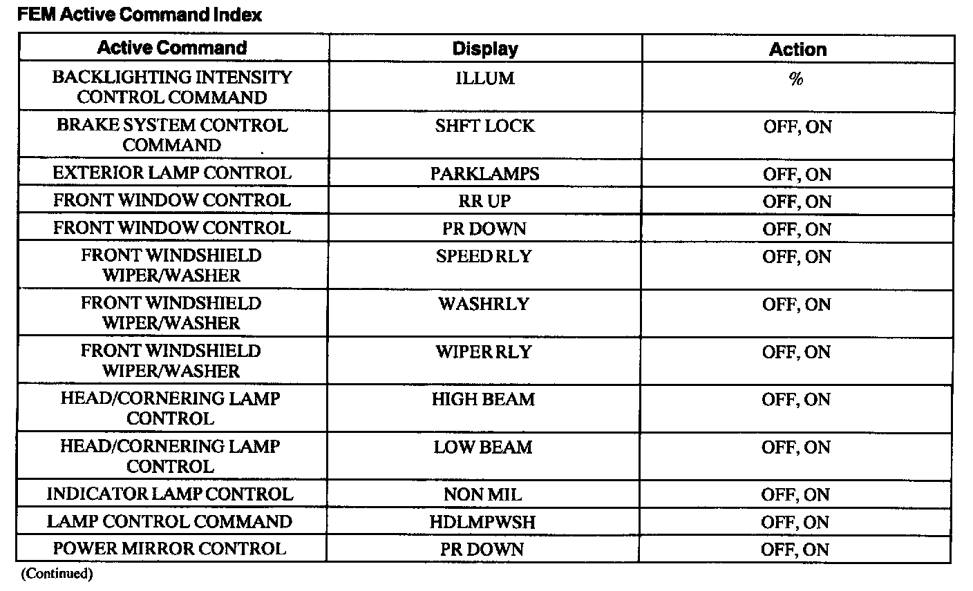 Front Electronic Module Active Command Index