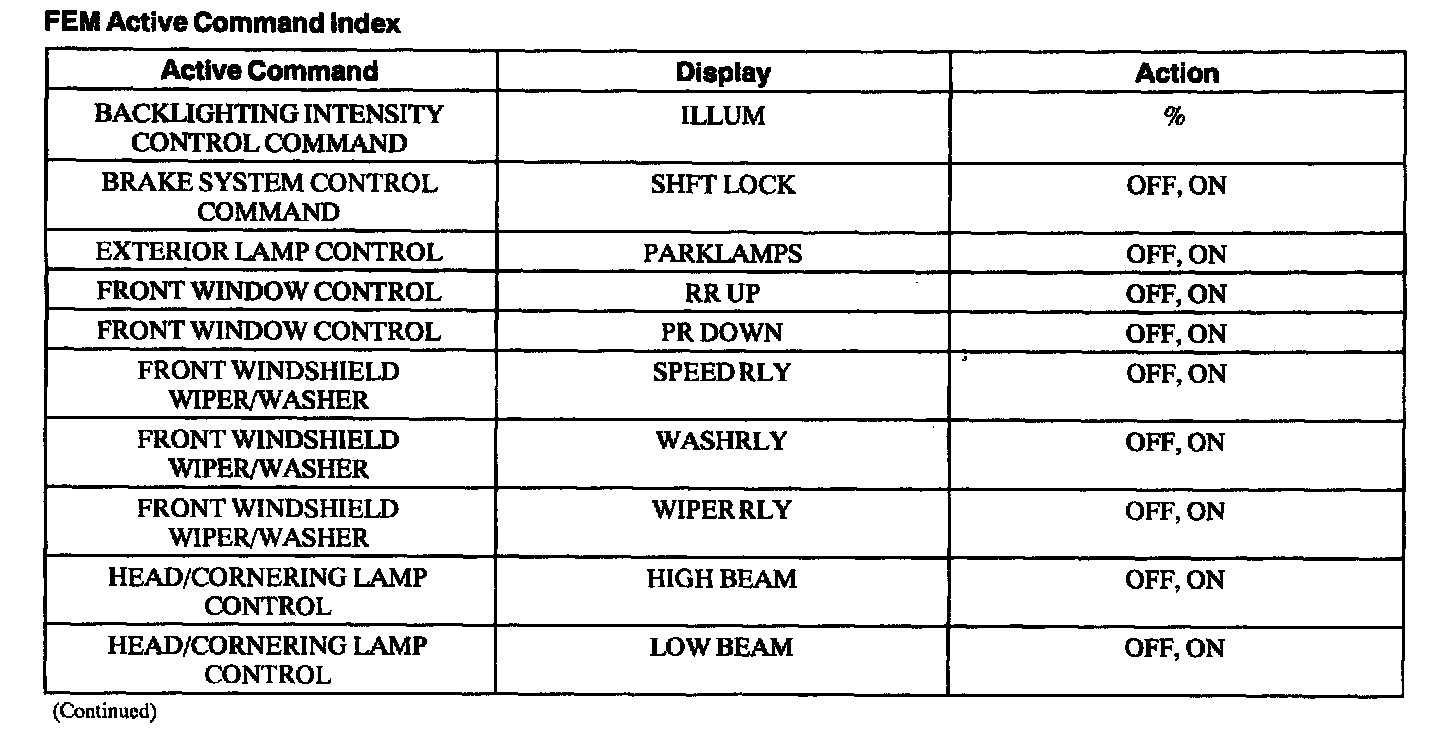 FEM Active Command Index