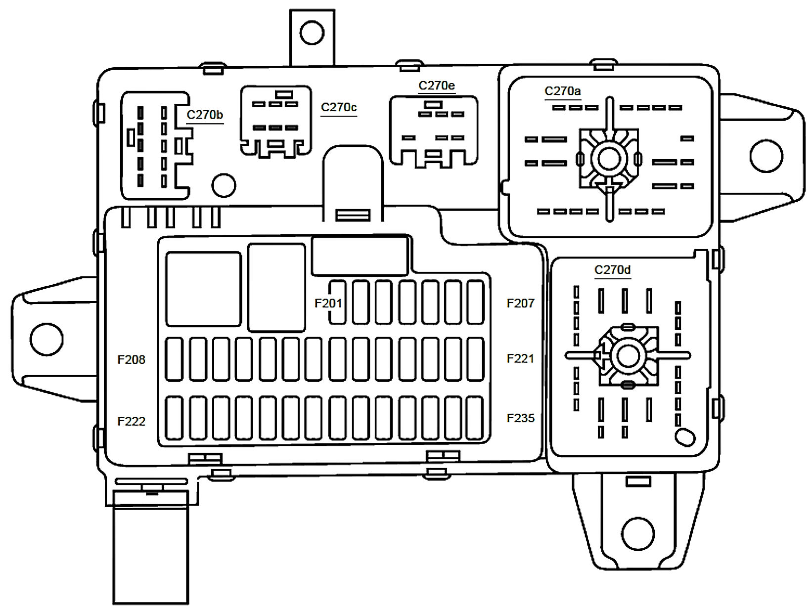 ALLDATA Editor's Note: Ford identifies this one component by 2 different names. Users have reported success comparing these images to determine Application/ID or Location of Fuses and Relays with the Central Junction Box/Passenger Compartment Fuse Panel.