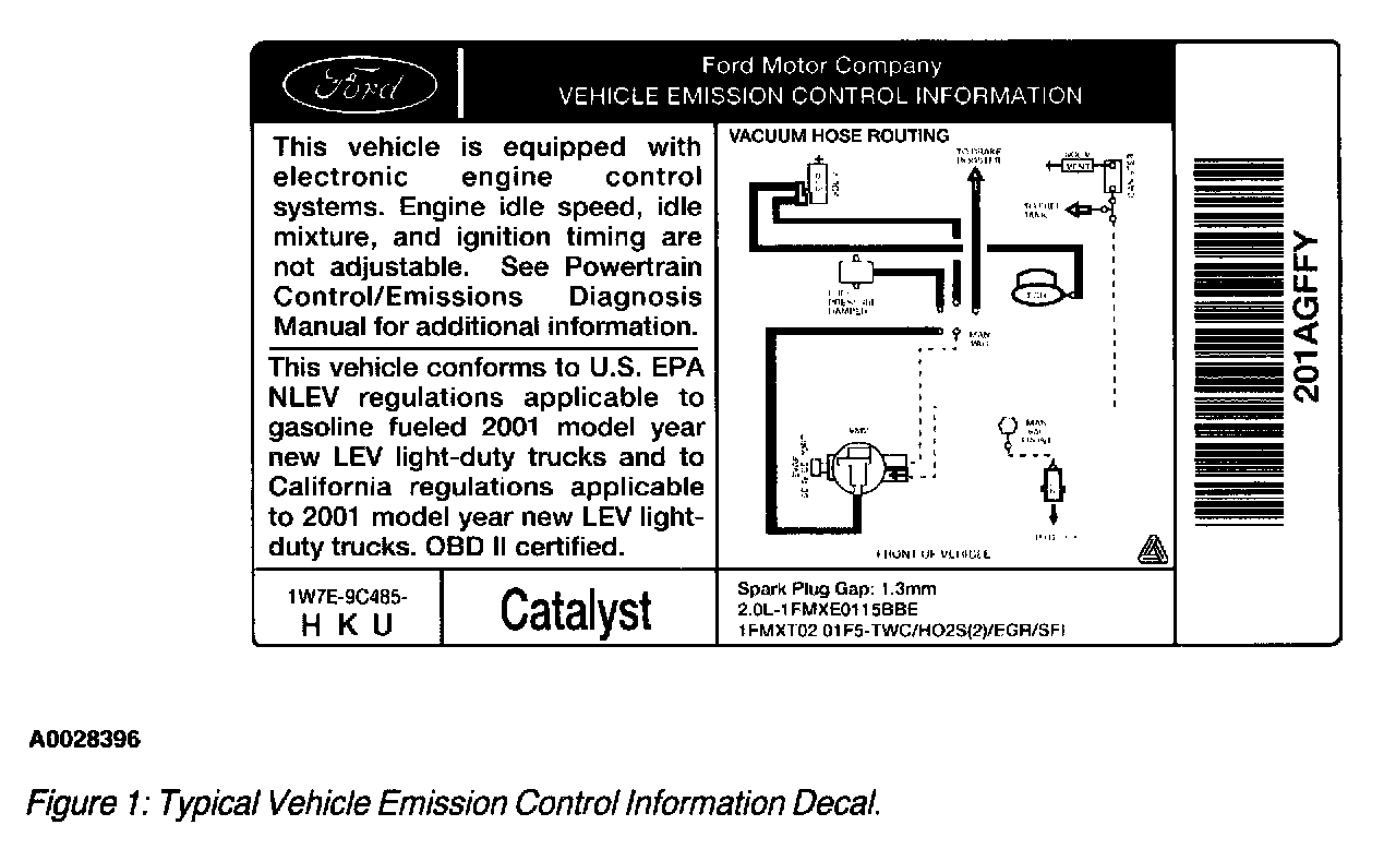 Each vehicle has a decal (Figure 1) containing emission control information that applies specifically to the vehicle and engine. The specifications on the decal are critical to servicing emissions Systems.