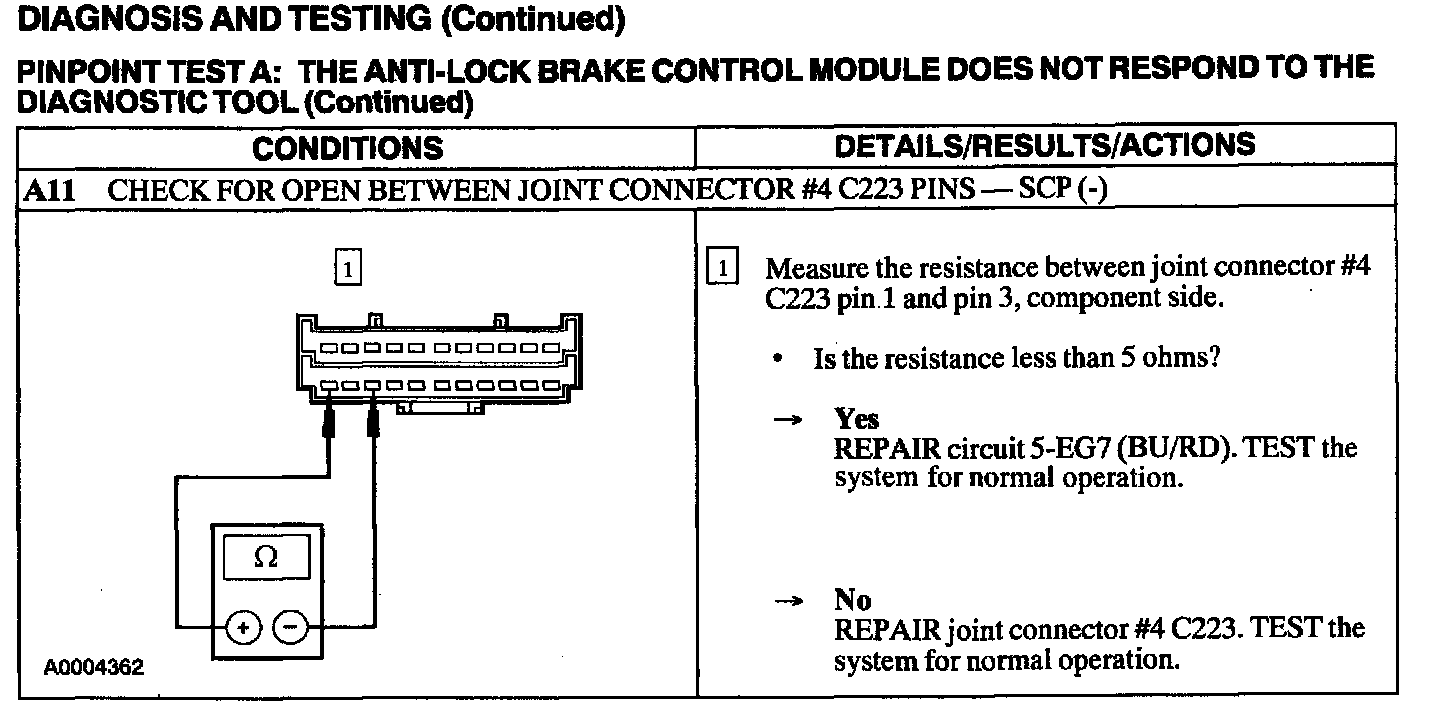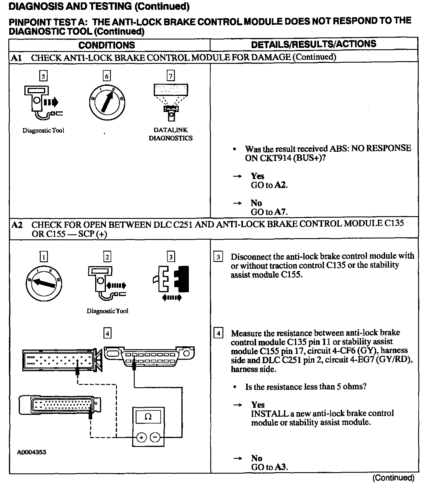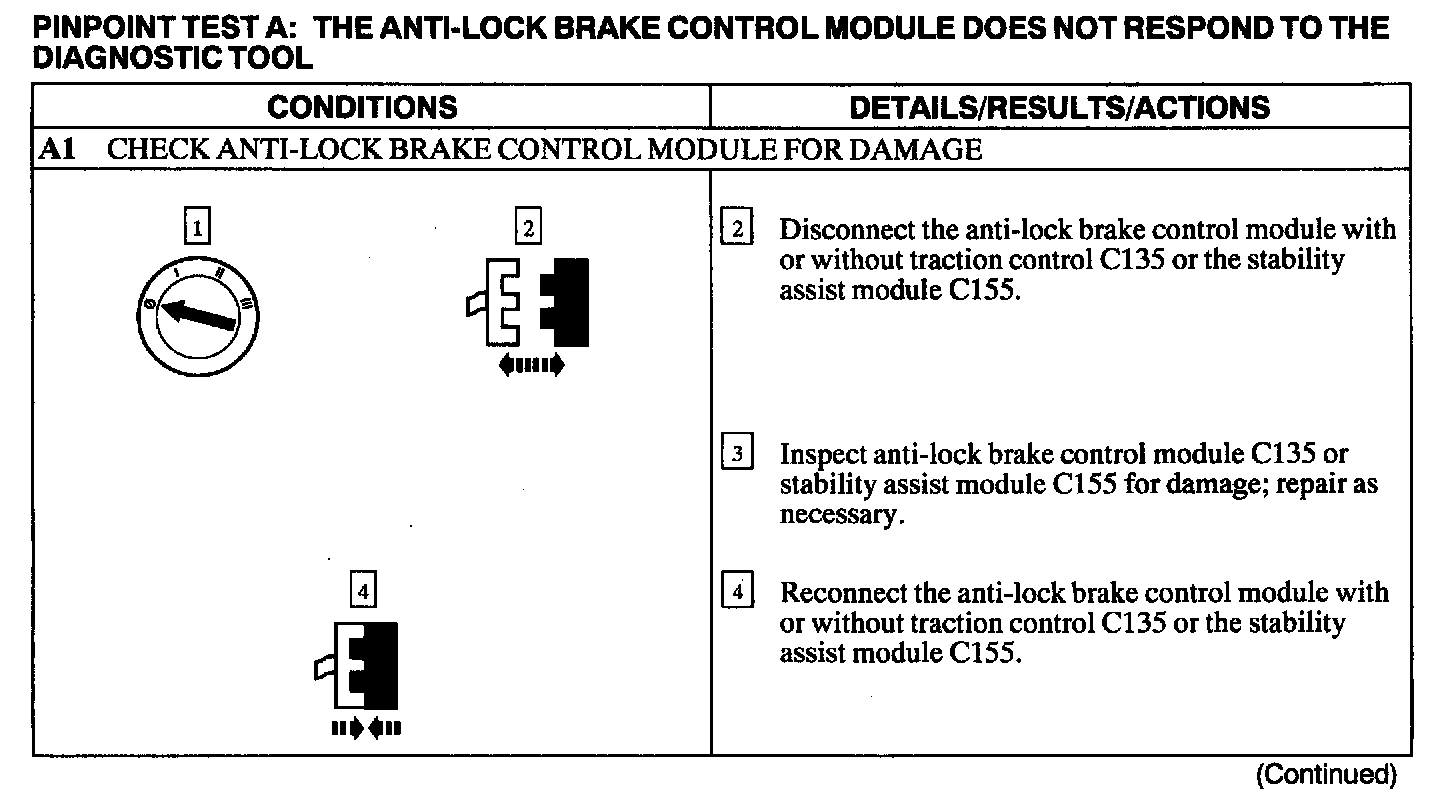 Test A: ABS Control Module Does Not Respond to the Scan Tool