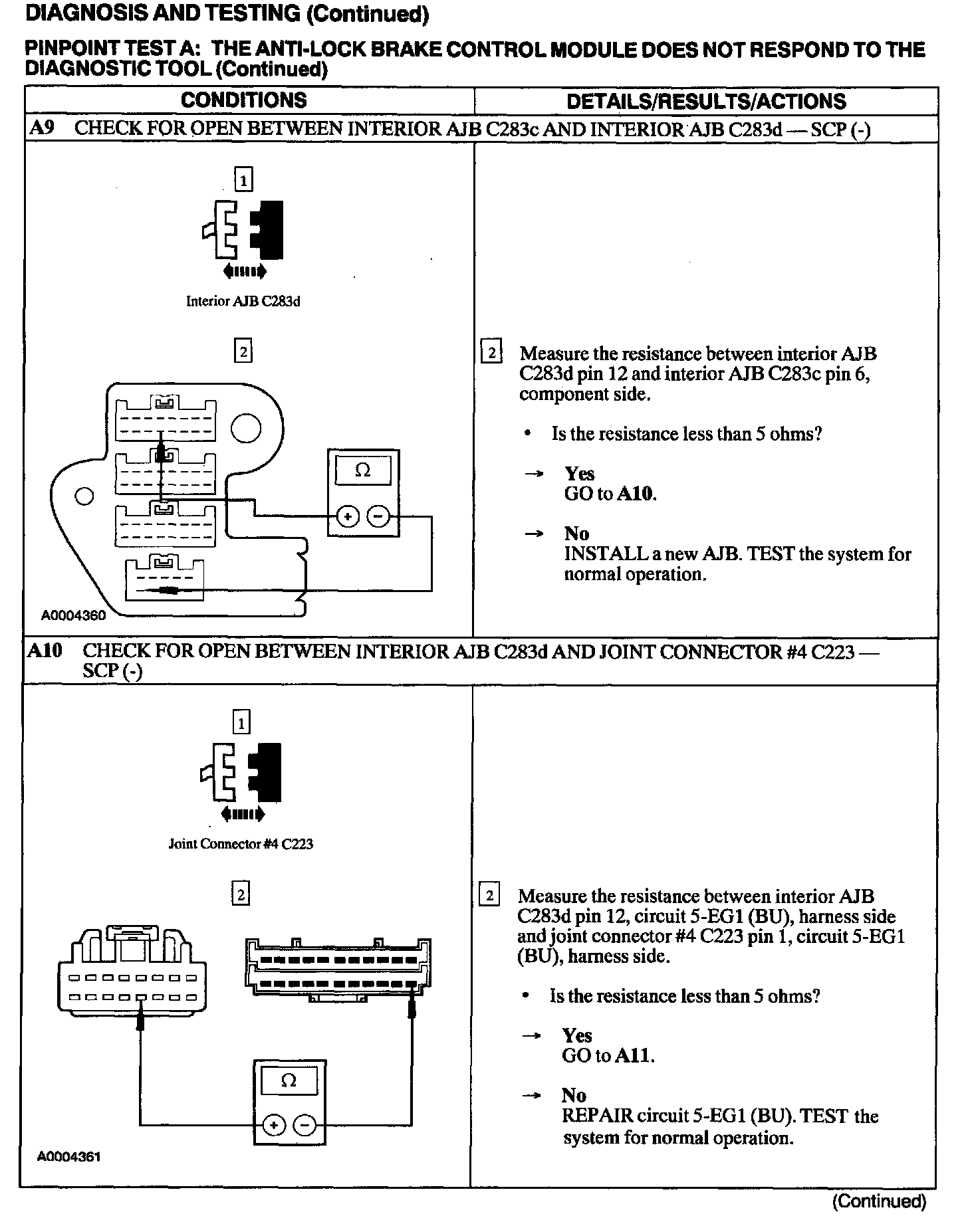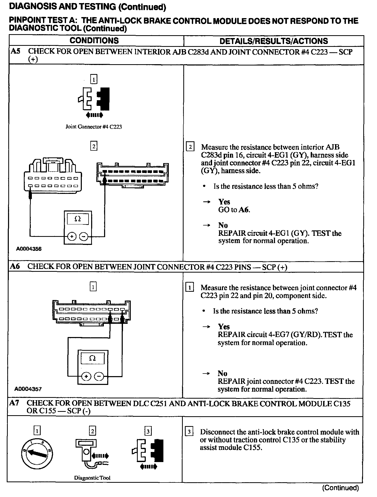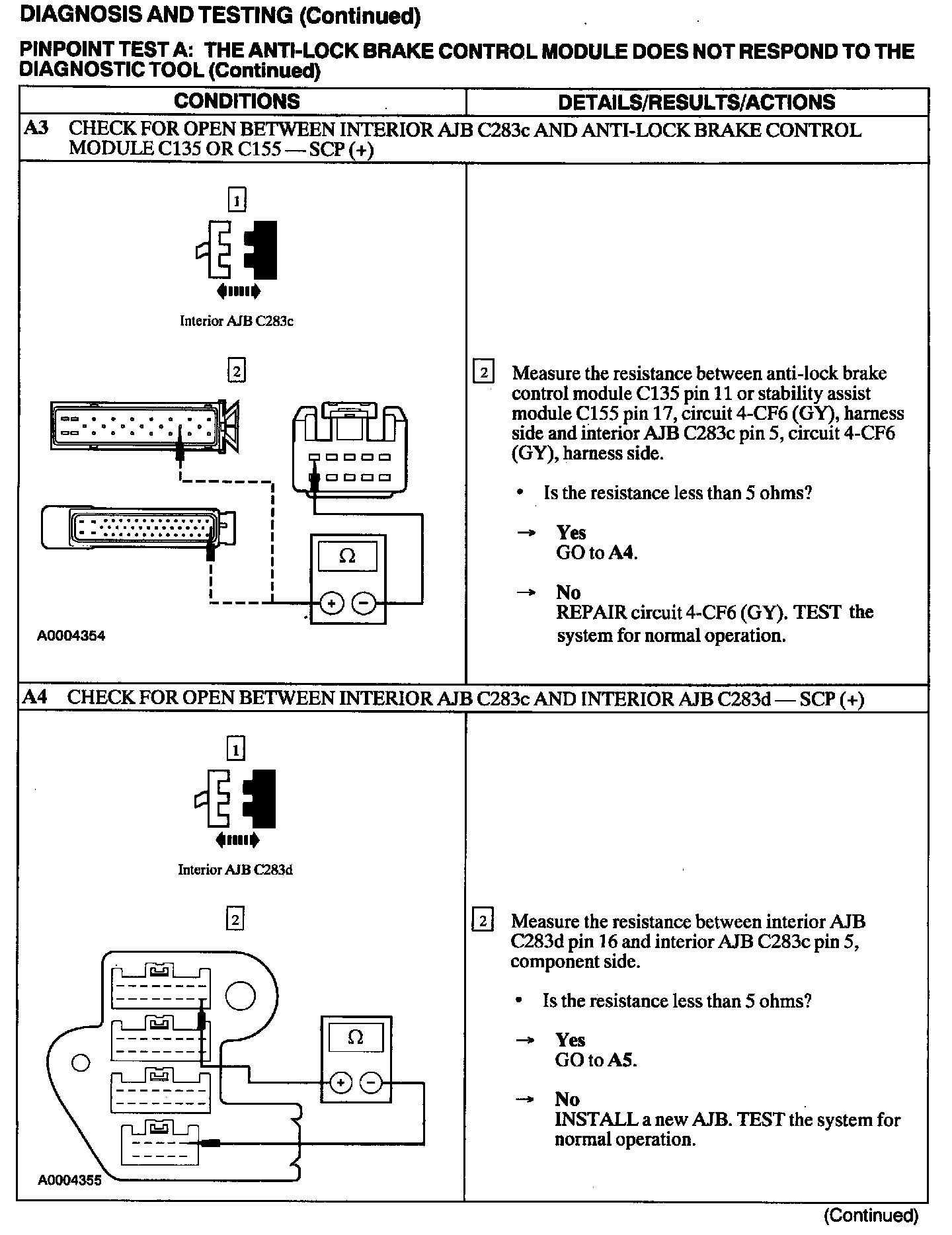 Test A: ABS Control Module Does Not Respond to the Scan Tool