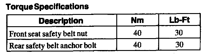 Torque Specifications: