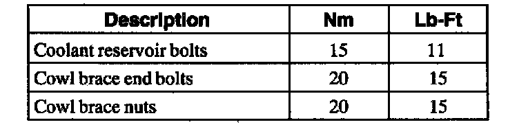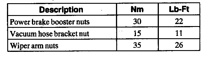 TORQUE SPECIFICATIONS