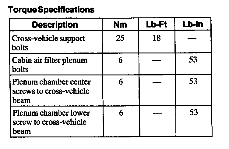 Torque Specifications: