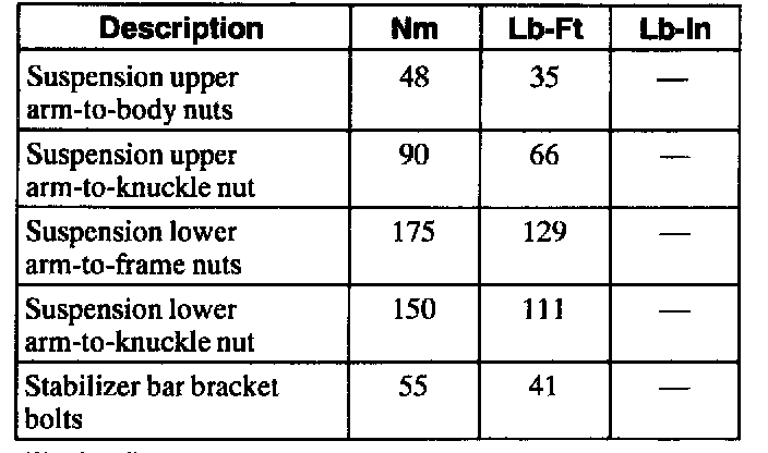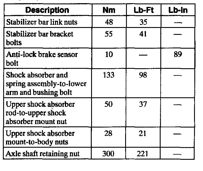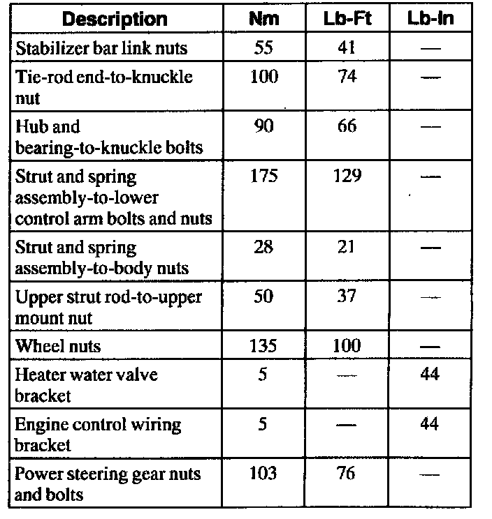Torque Specifications