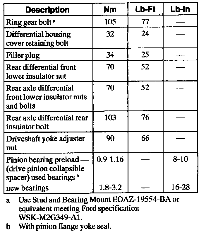 Torque Specifications