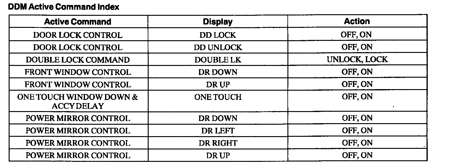 Driver Door Module (DDM) Active Command Index