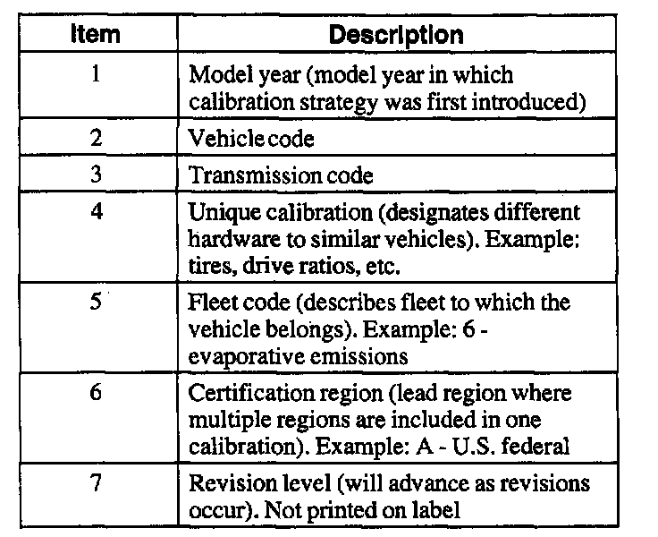 The Emission/CAFE/CO2 Compliance Department is responsible for assigning these calibration numbers. Unique calibration identifications are assigned to cover similar vehicles to differentiate between tires, drive configurations, final drive ratios and other certification-significant factors.