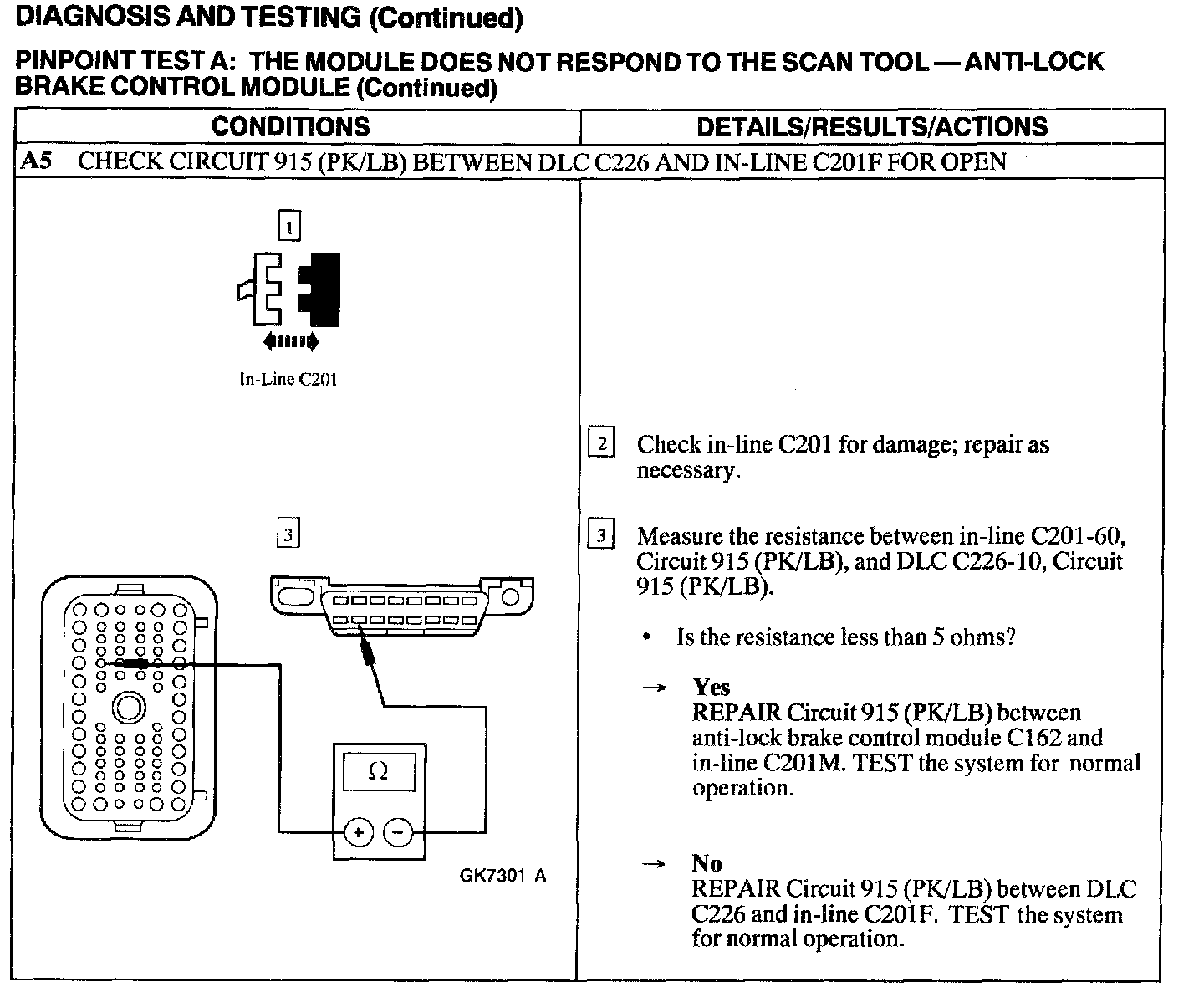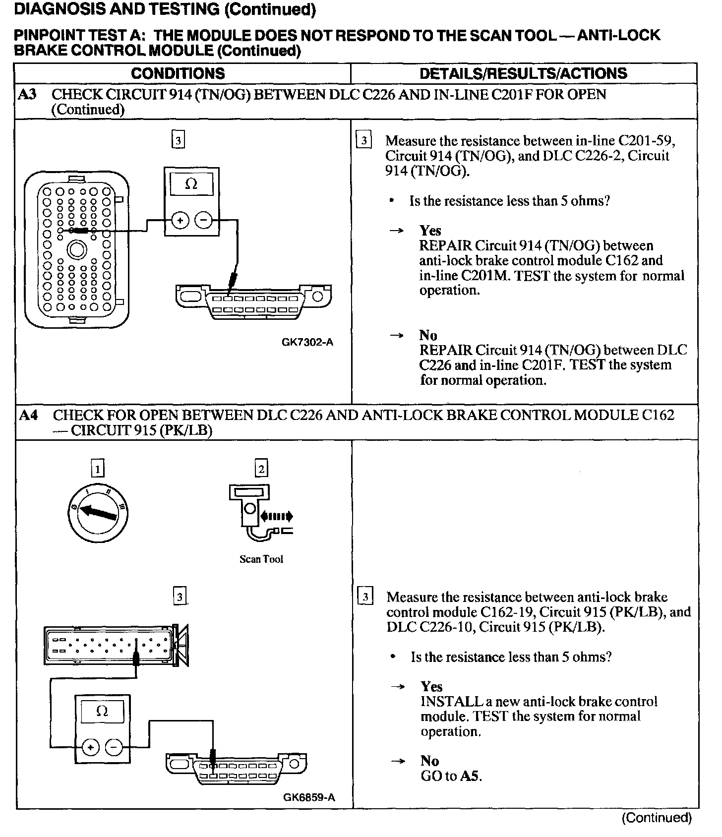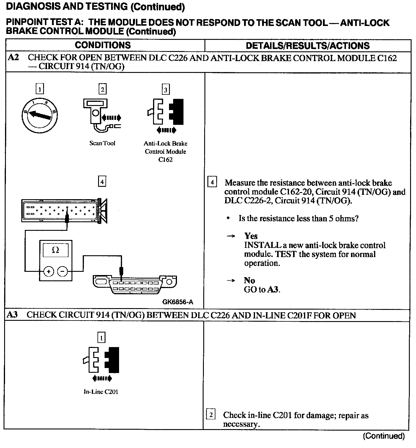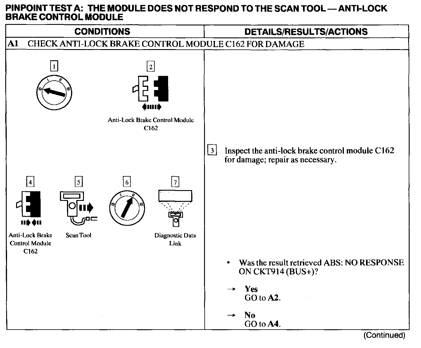 Test A: ABS Control Module Does Not Respond to the Scan Tool