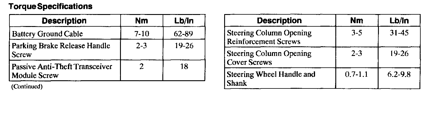 Torque Specifications: