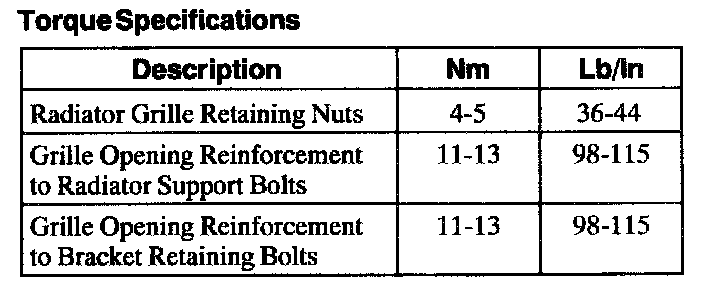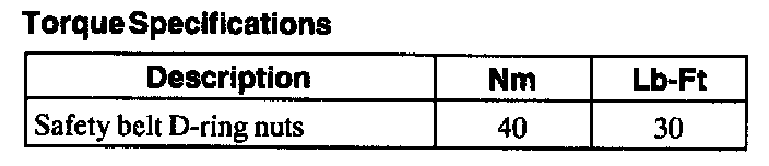 Torque Specifications: