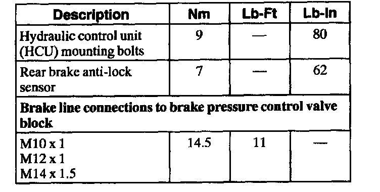 Tightening Specifications