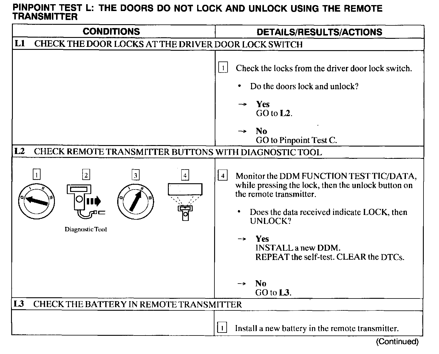 Test L: Doors Do Not Lock And Unlock Using The Remote Transmitter