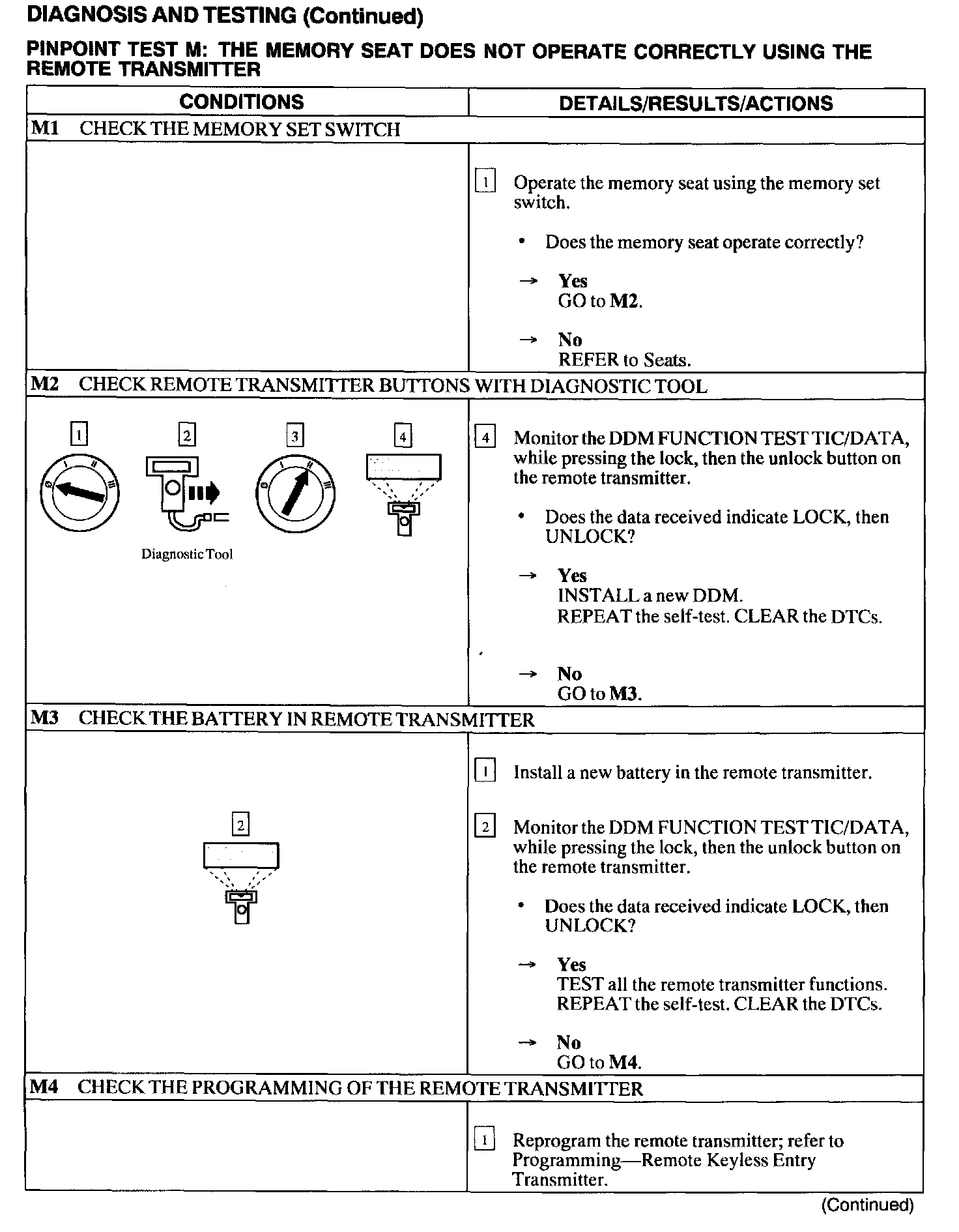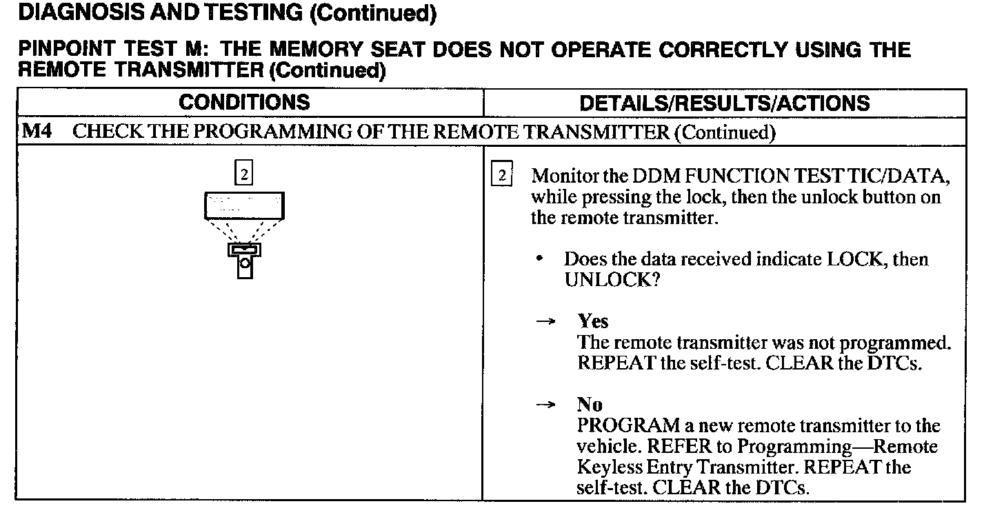 Test M: Memory Seat Does Not Operate Correctly Using the Remote Transmitter