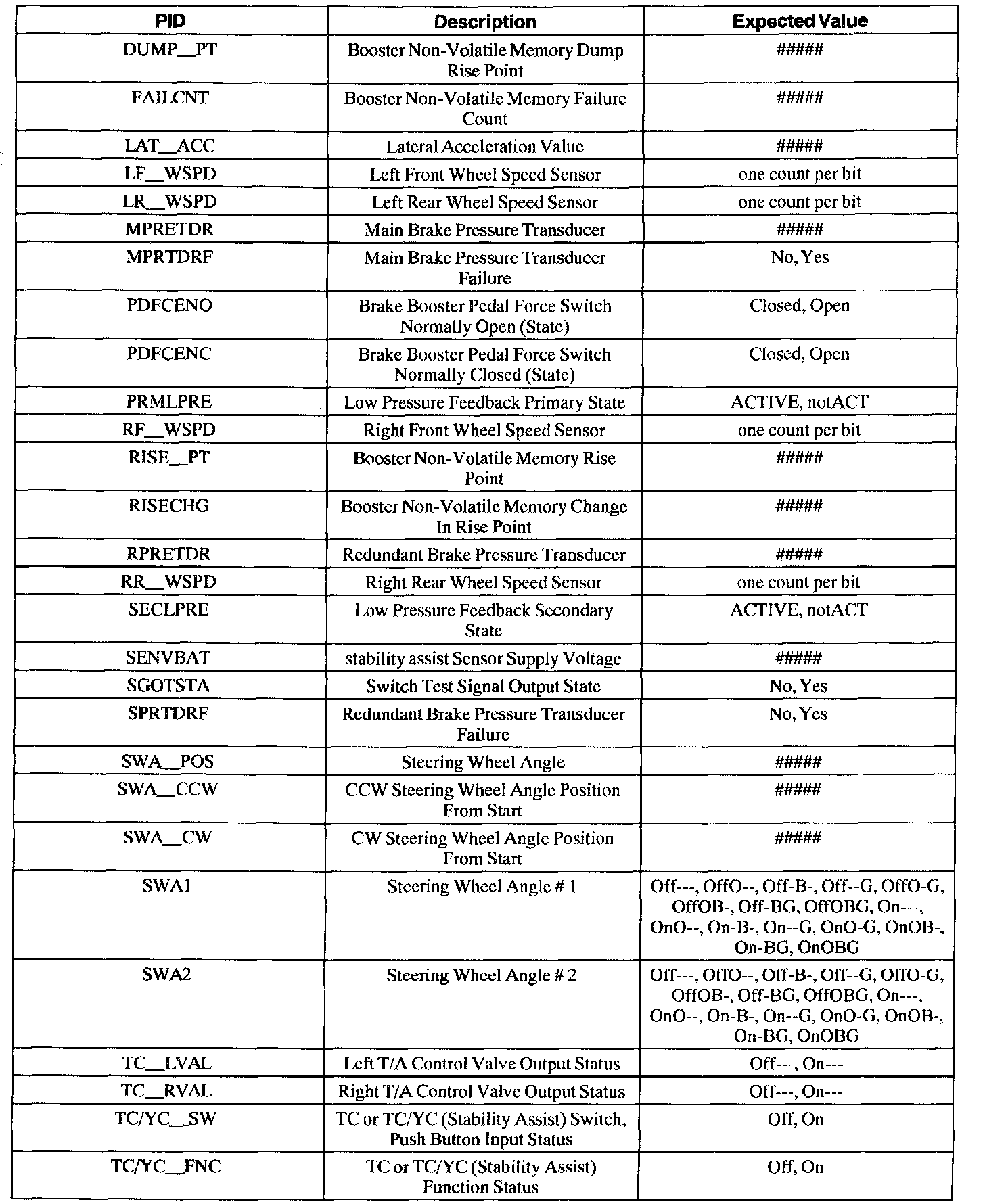 Stability Assist Module Parameter Identification (PID) Index