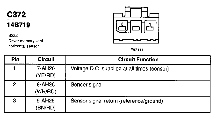 Driver Memory Seat Horizontal Sensor