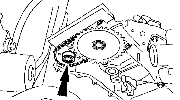 1 Insert a thin wire into the check valve and apply hand pressure until the tensioner is fully collapsed.