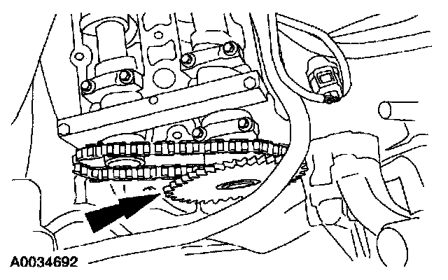 4. Position the intake sprocket, chain and exhaust sprocket on the camshafts as an assembly.