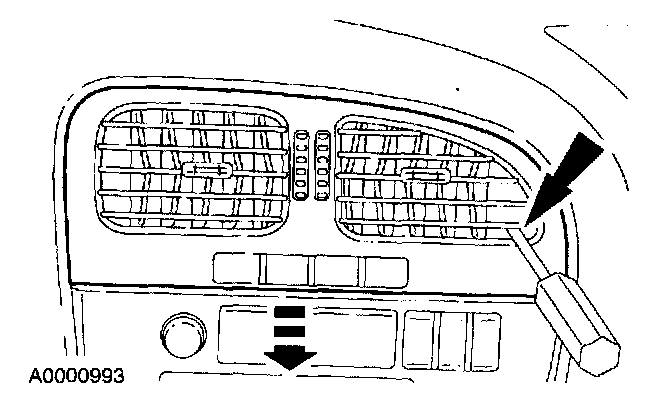 3. Insert a mini-pick in the center register and pull the center register from the instrument panel.