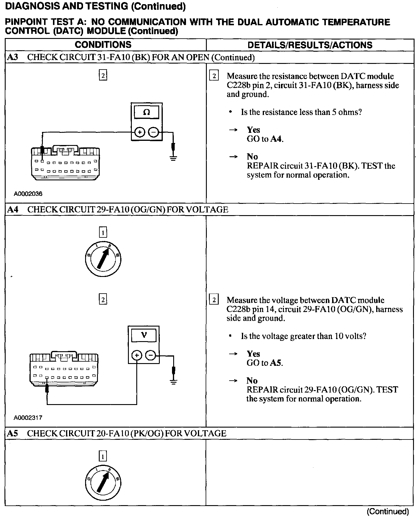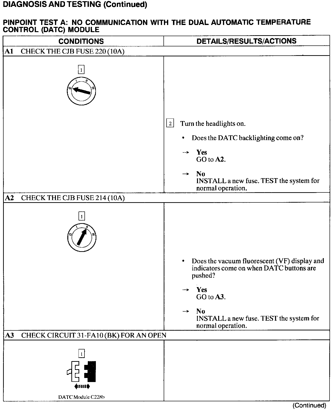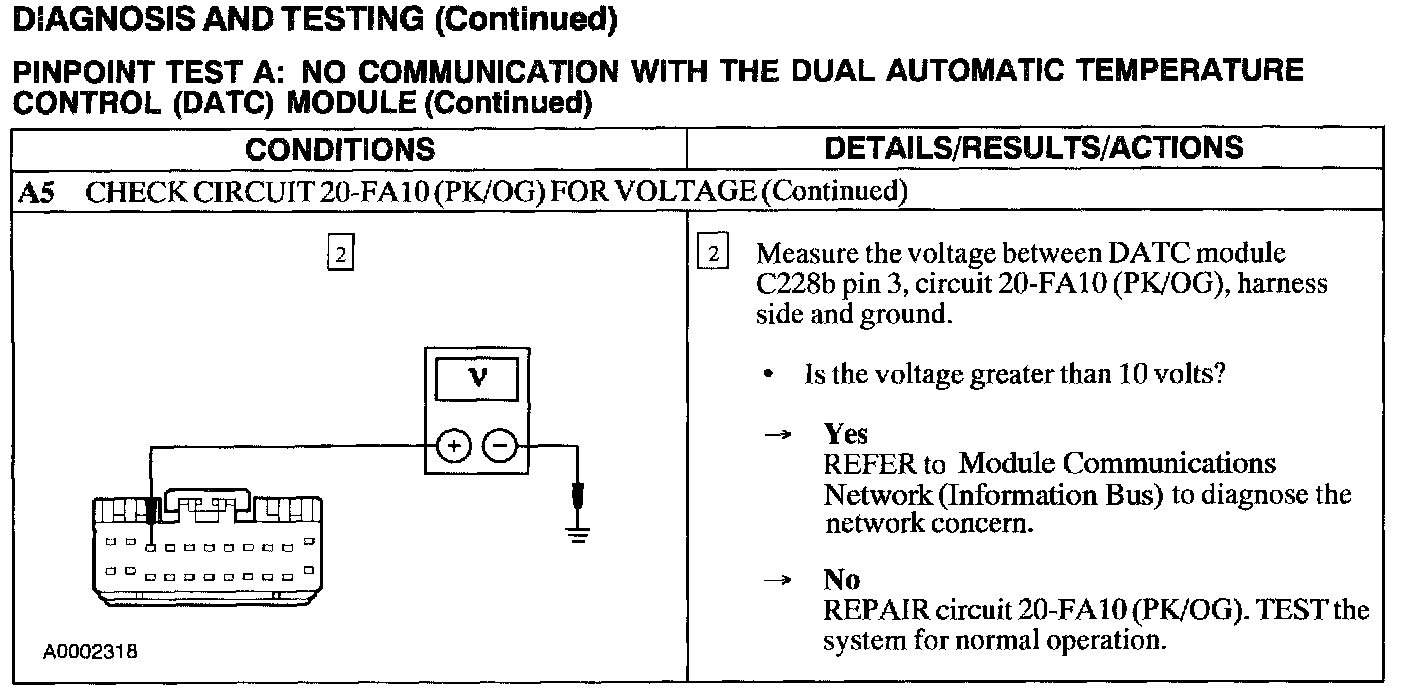 Test A: No Communication W/Dual Temp. Cont (DATC) Module
