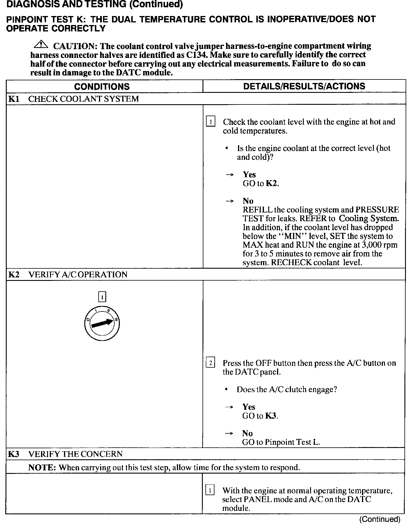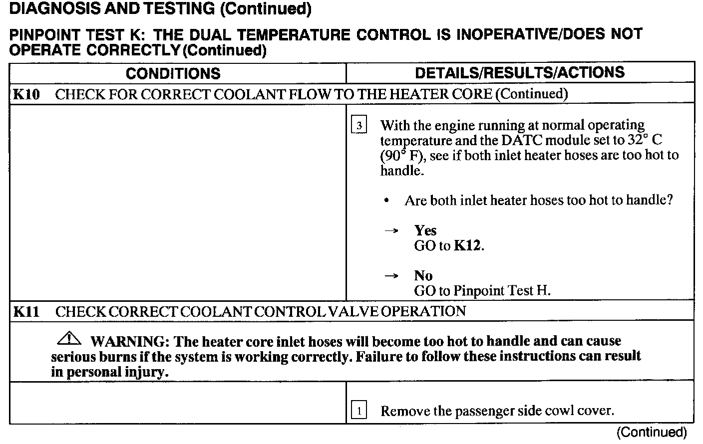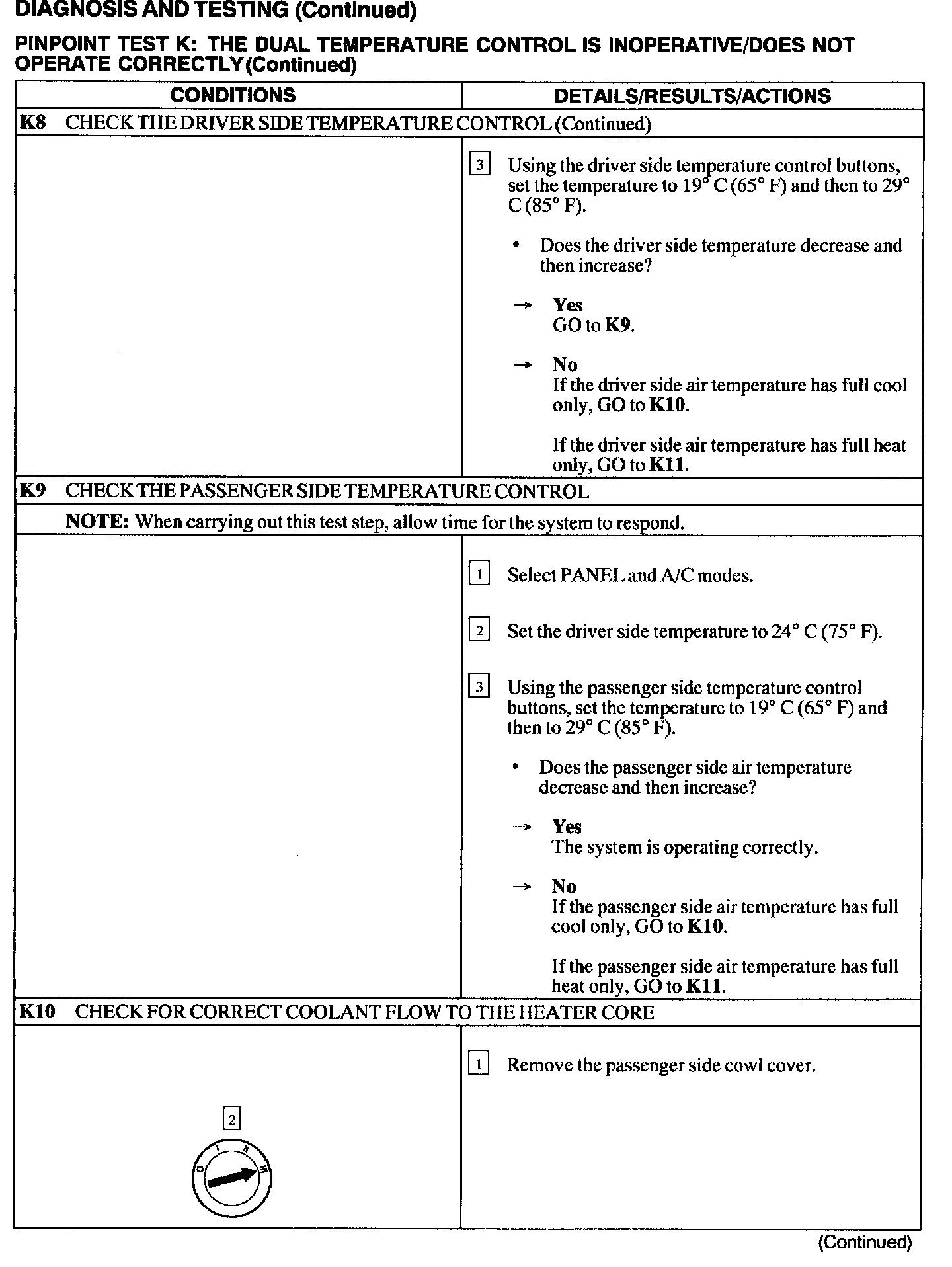 Test K: Dual Temp. Control Is Inop./Does Not Operate Correctly