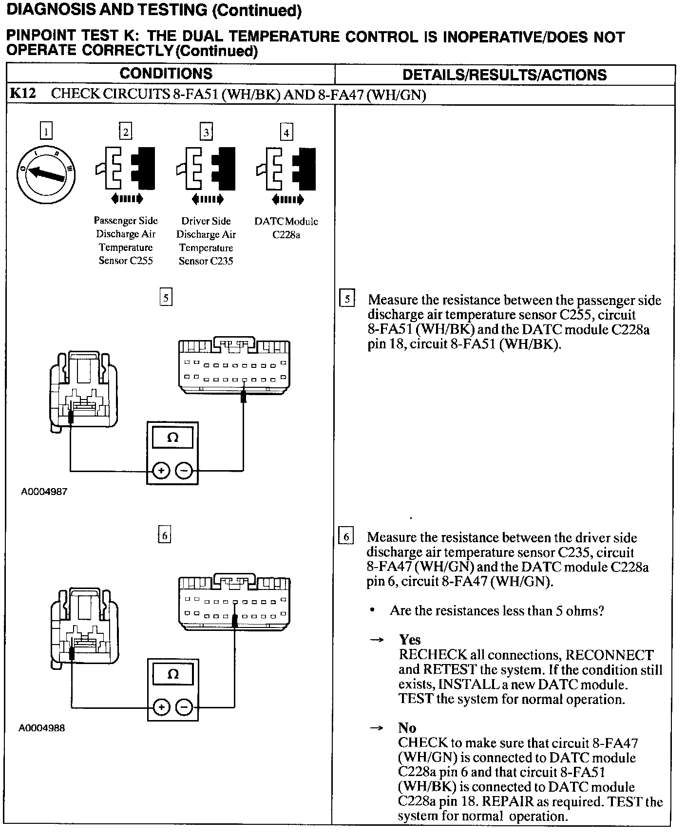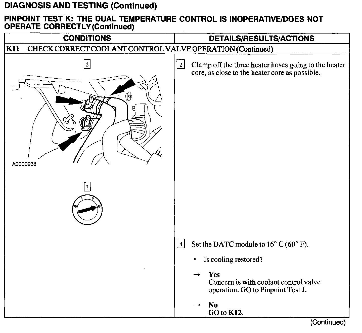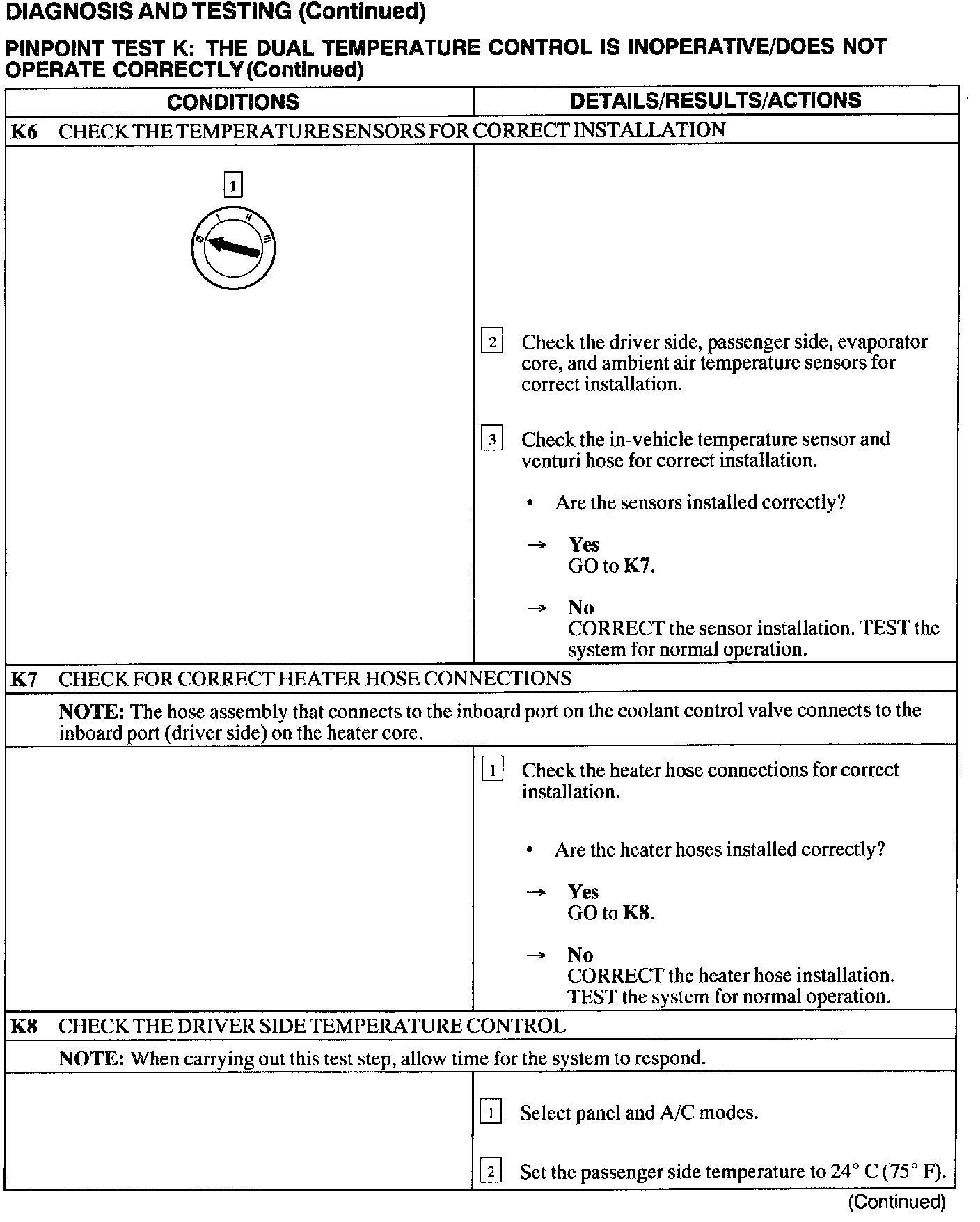 Test K: Dual Temp. Control Is Inop./Does Not Operate Correctly