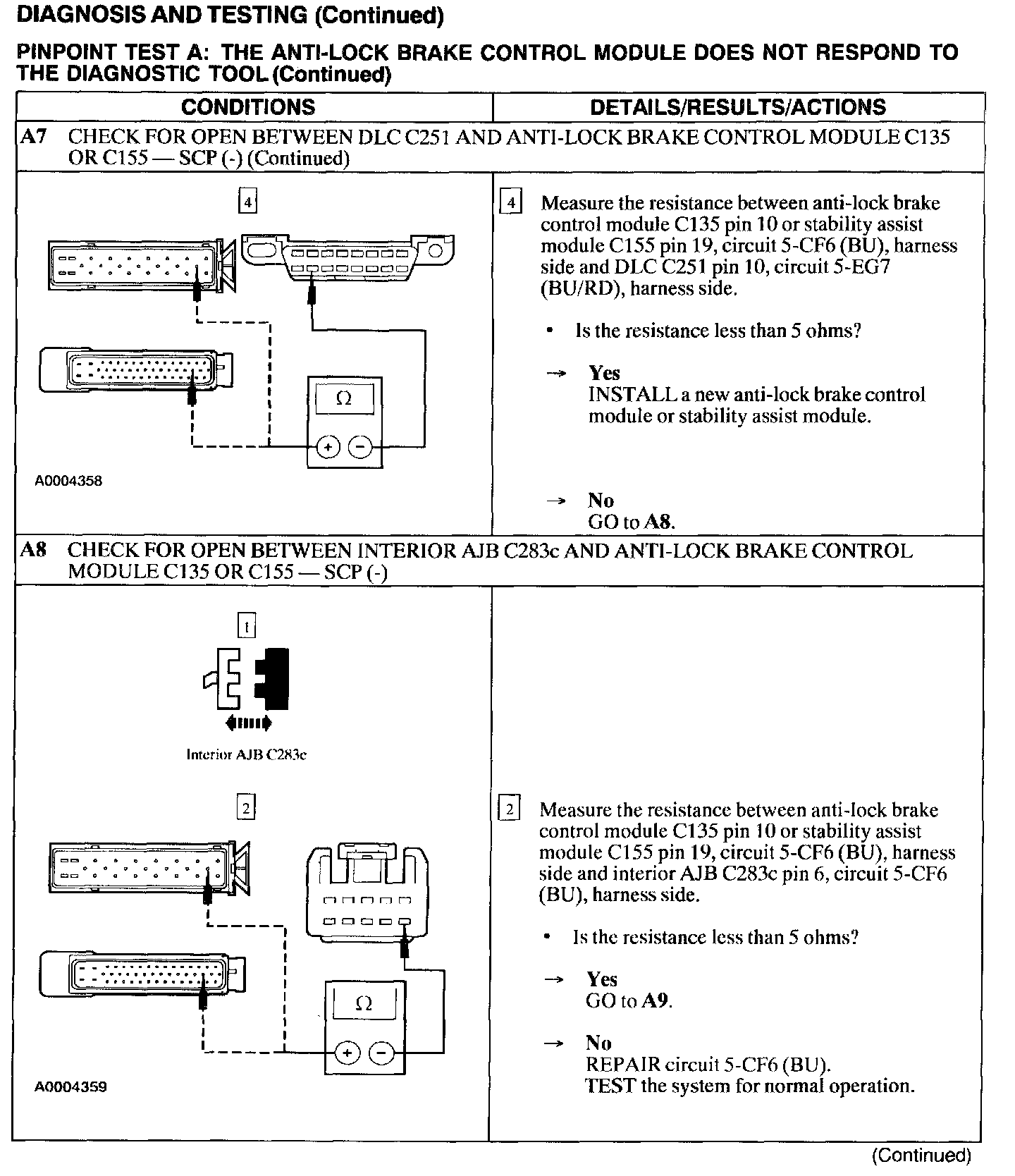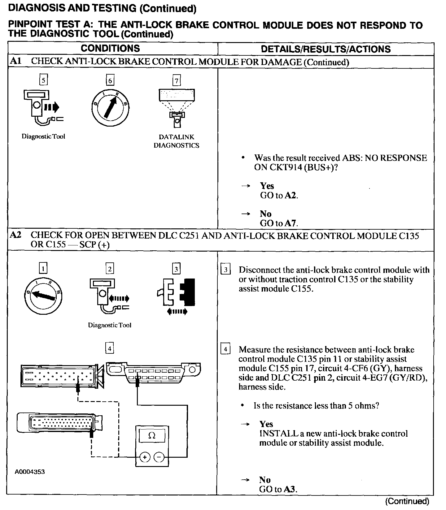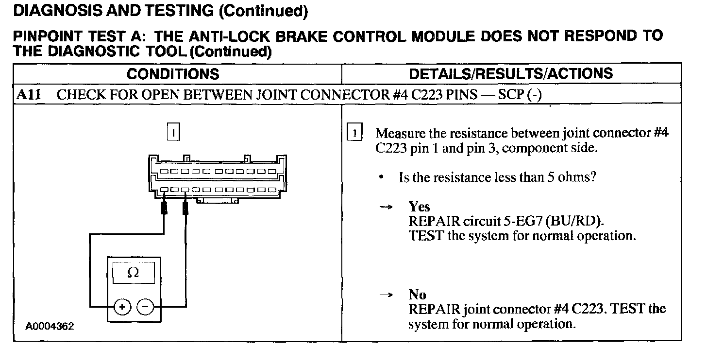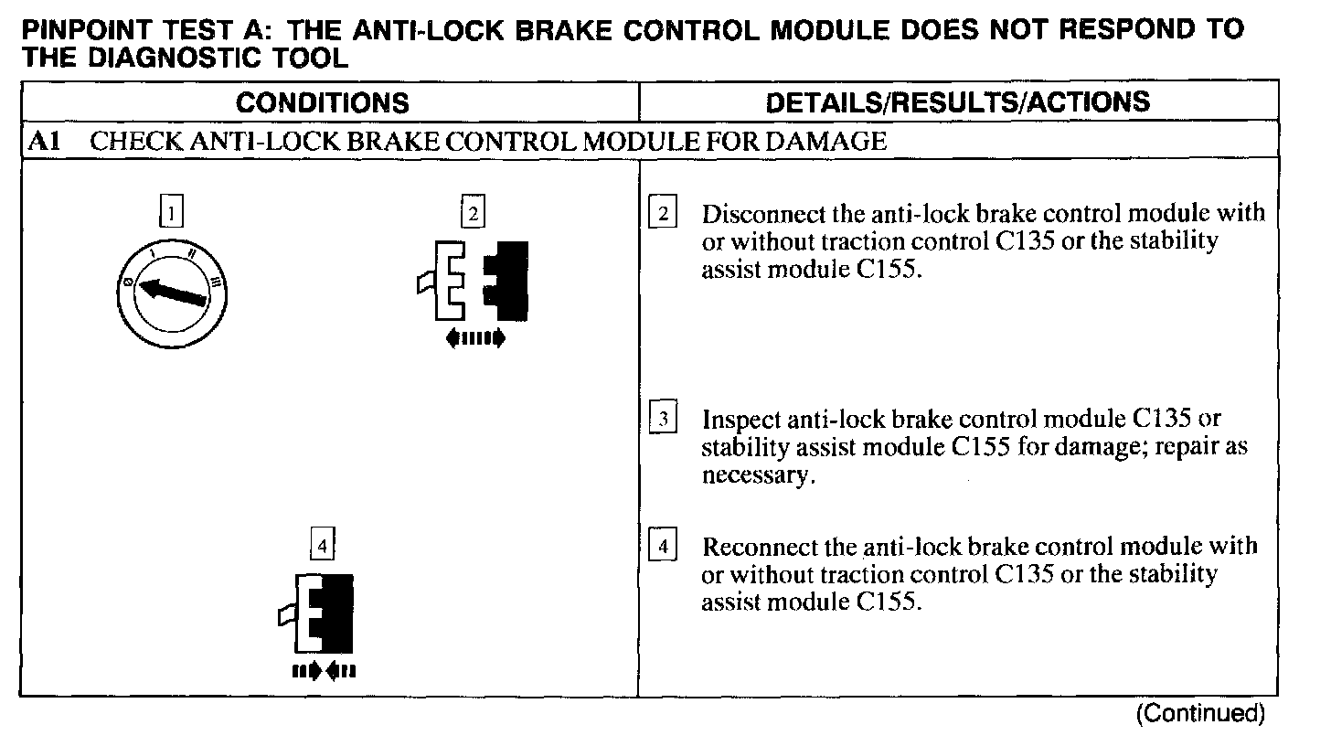 Test A: ABS Control Module Does Not Respond to the Scan Tool