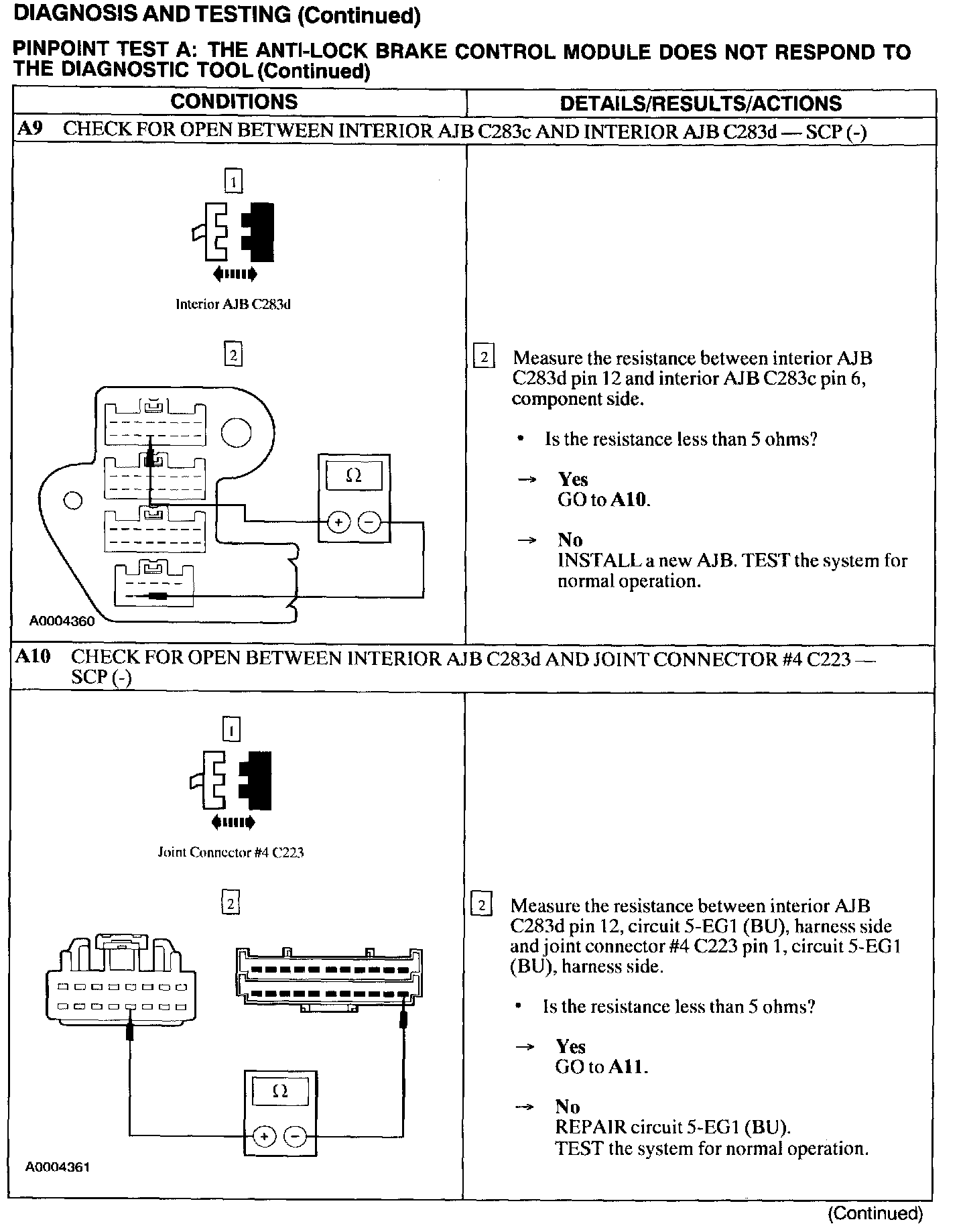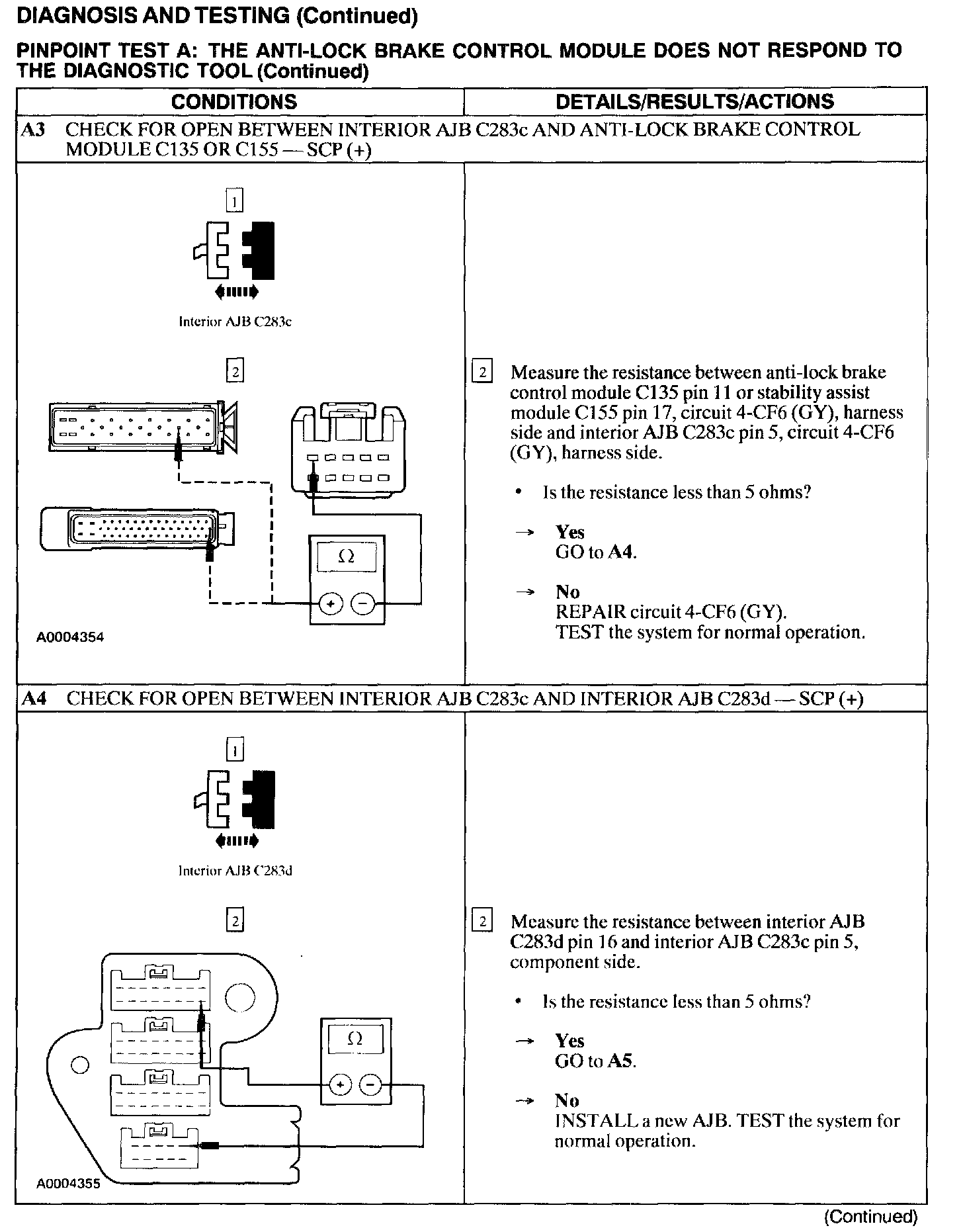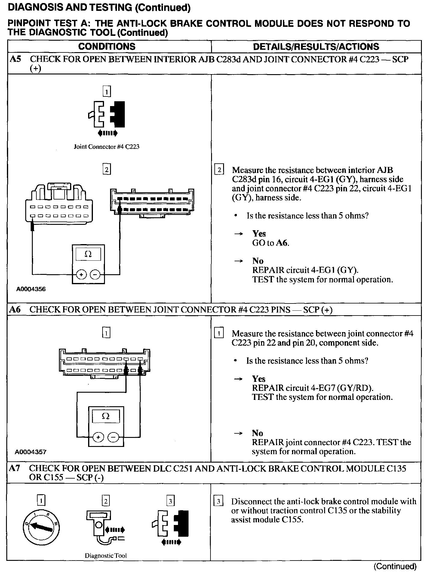 Test A: ABS Control Module Does Not Respond to the Scan Tool
