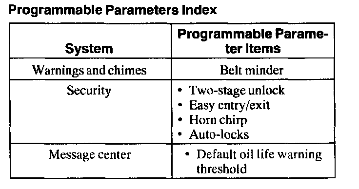 Programmable Parameters Index: