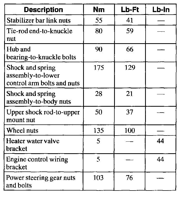 Torque Specifications