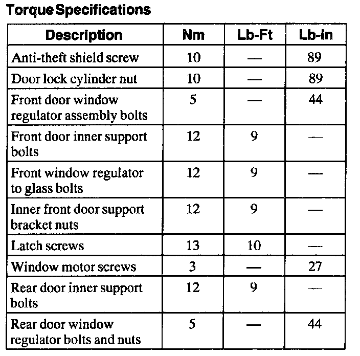 Torque Specifications:
