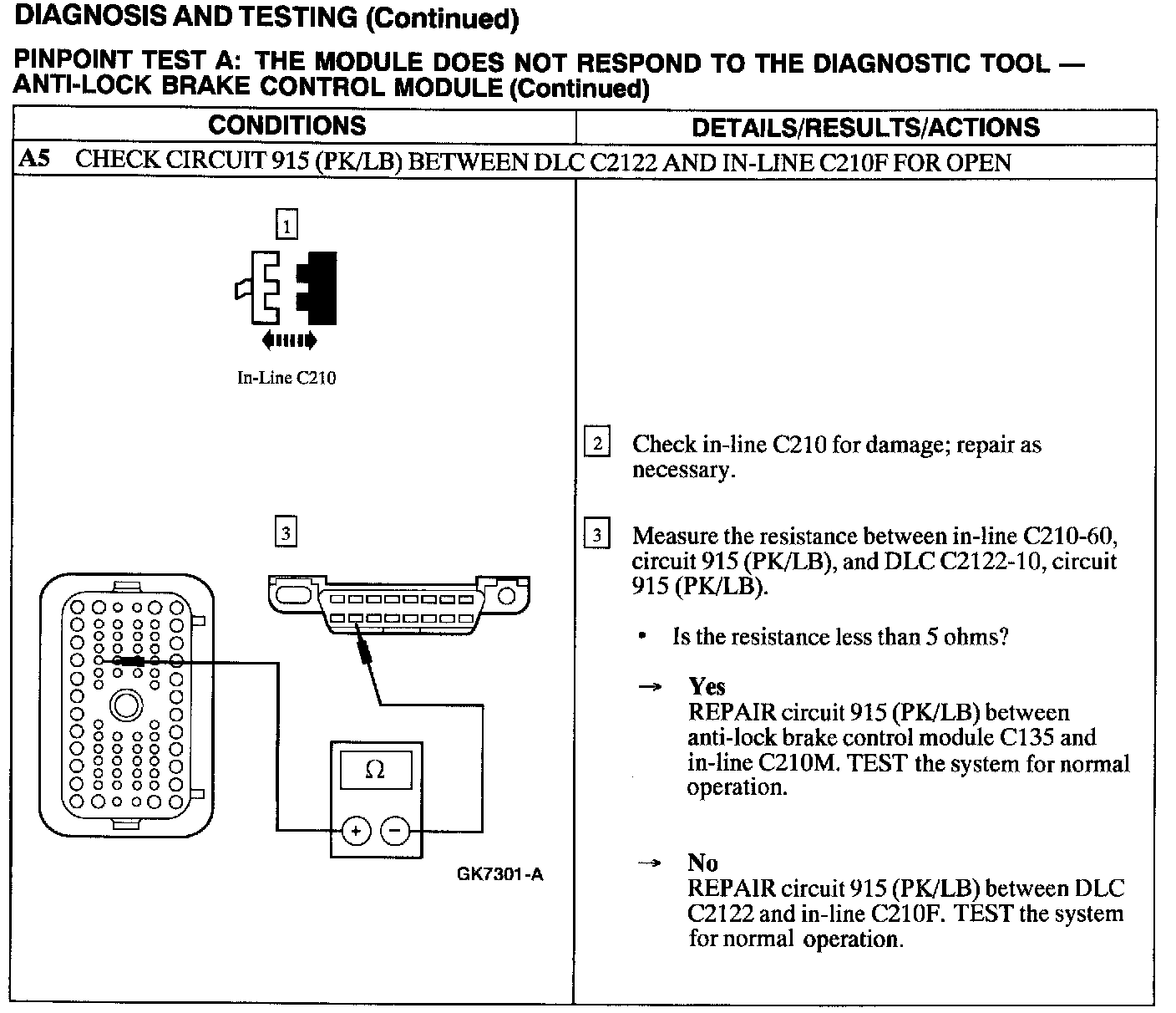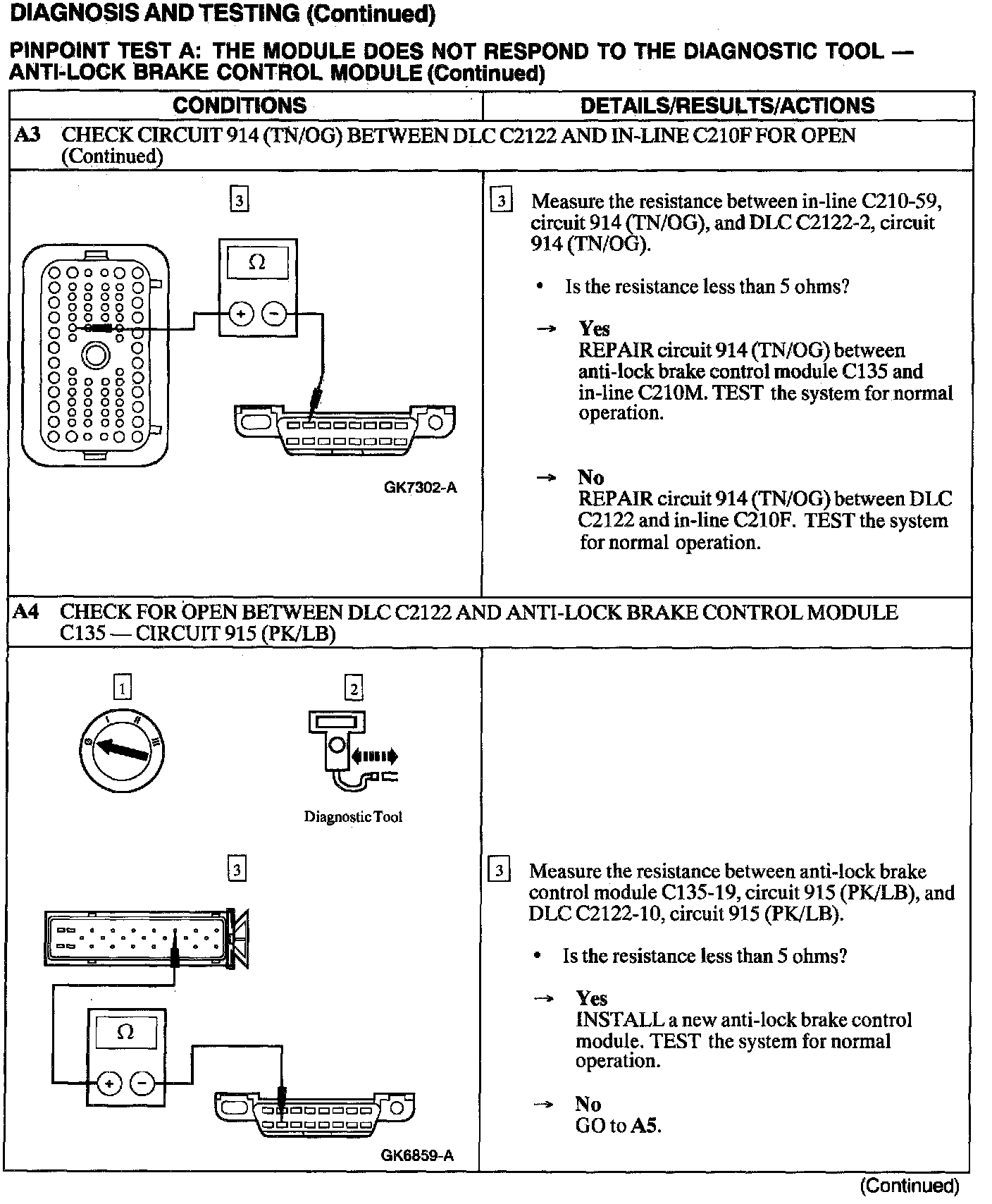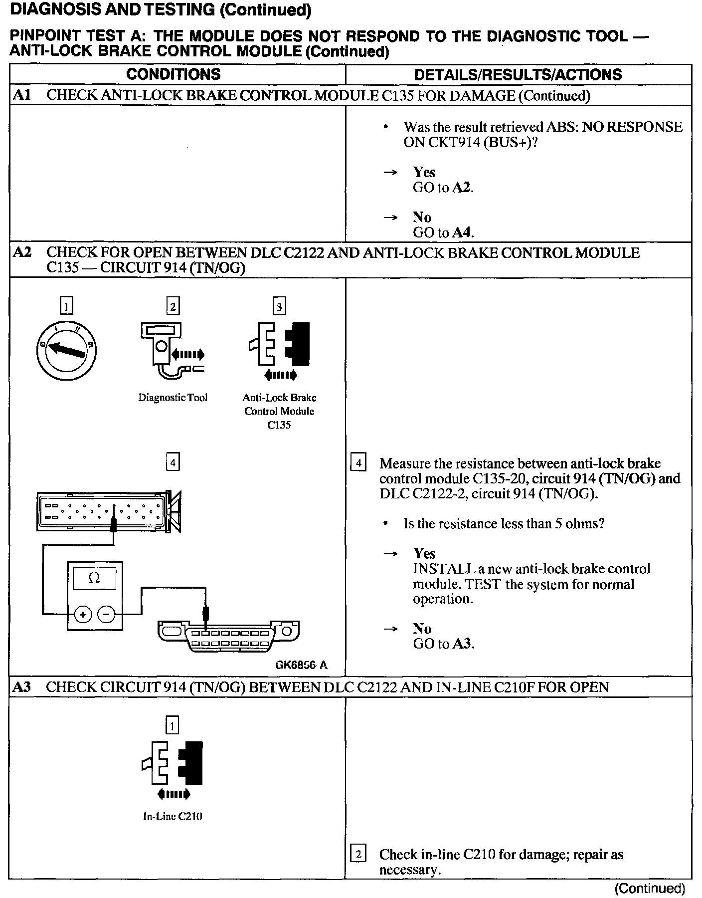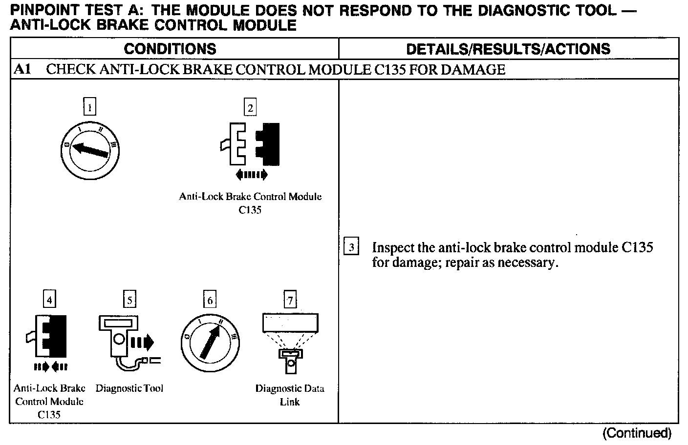 Test A: ABS Control Module Does Not Respond to the Scan Tool