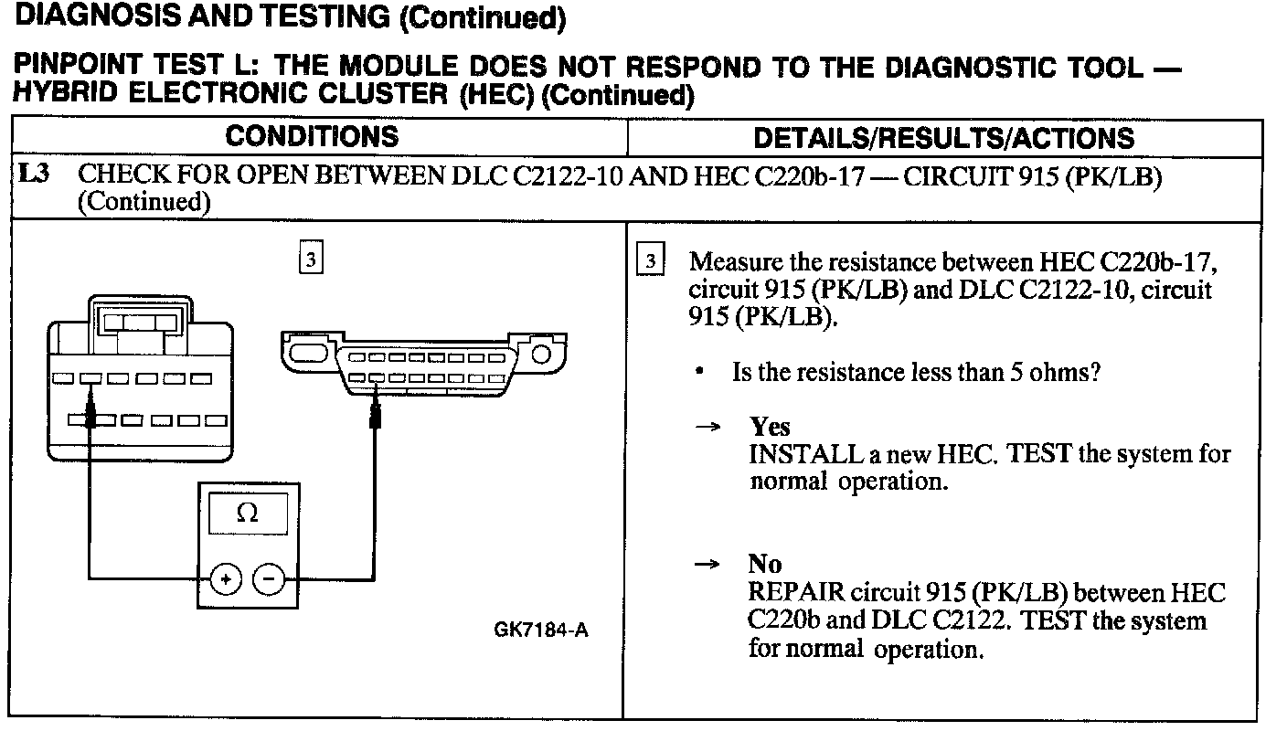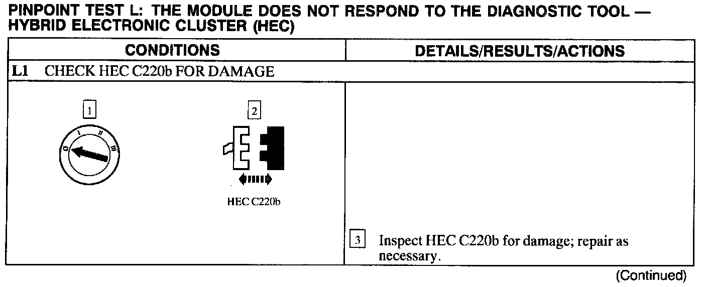 Test L: HEC Module Does Not Respond To The Diagnostic Tool