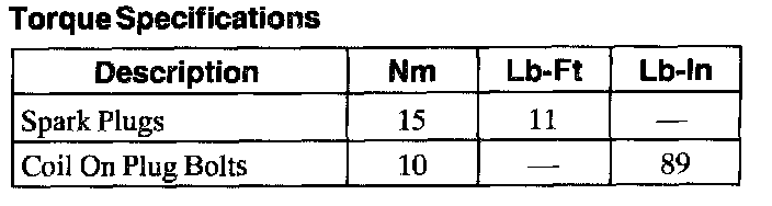 Torque Specifications: